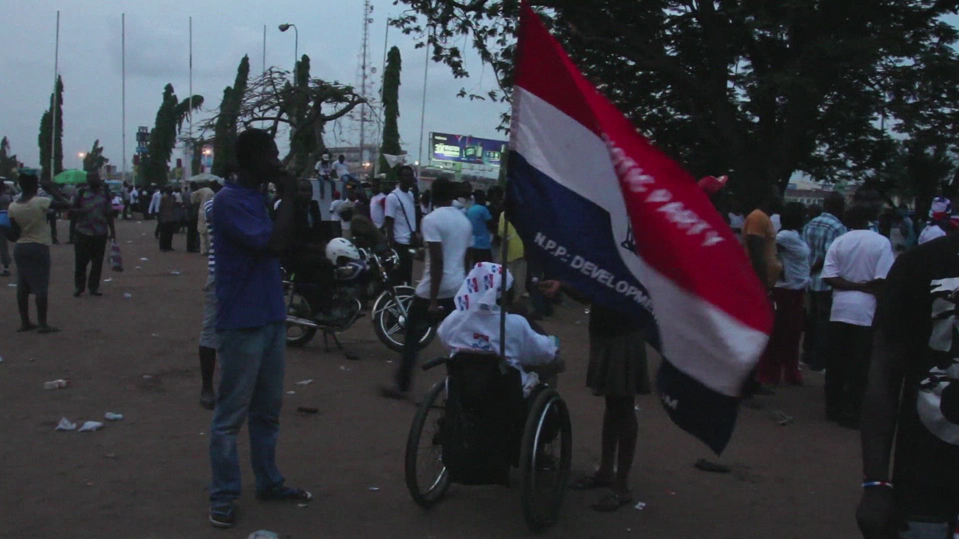Ghana: Frustration for some as vote extends to second day Early results showed a tight race in Ghana's presidential election on Saturday as the West African country allowed voting in some areas for a second day after delays forced an extension of the polls. Supporters of the New Patriotic Party, Ghana's largest opposition party, staged a protest outside a house where they alleged ballots were being tampered with. Images
