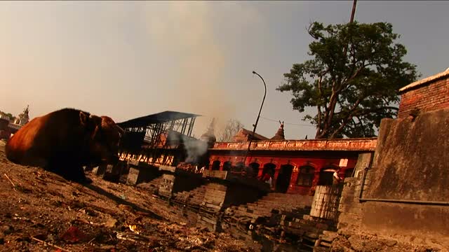 169398 - Ceremonial fire out of temple in nepal