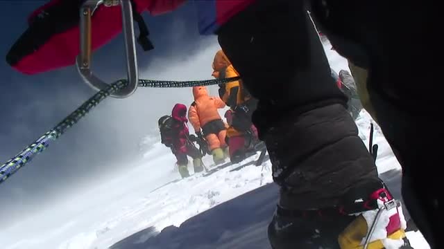 471664 - Skiers On Top of the Mountain - Slow Motion