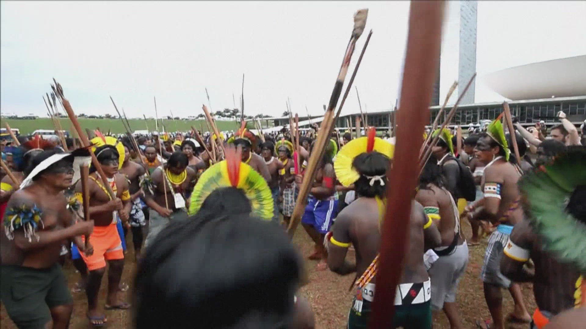 Brazilian protesters denounce police violence in Rio Hundreds of people protest in a Rio favela to denounce police violence. Images and soundbites.