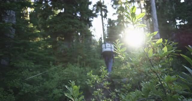 802611 - Walking into the forest with sun beams