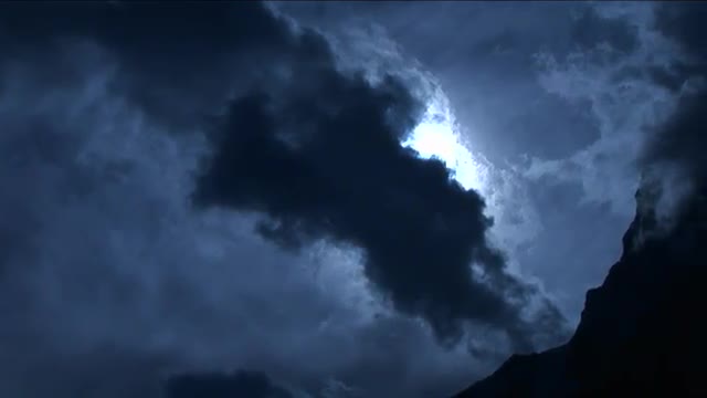 Pan onto peak in pale blue light with clouds