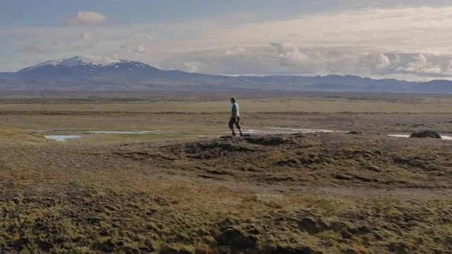 1058553 - Aerial shot of man on volcano crater in Iceland