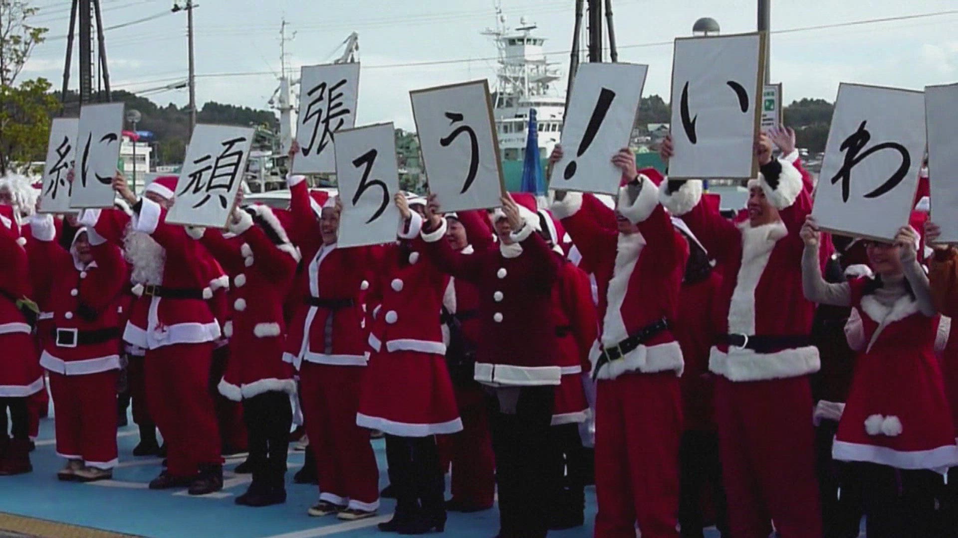 Volunteer santas hand out gifts to evacuees in Fukushima Volunteers dress as Santa Claus and visit temporary housing to hand out Christmas gifts to evacuees from Narahamachi after the accident at the nuclear power plant caused by the tsunami on March 11, 2011. Images
