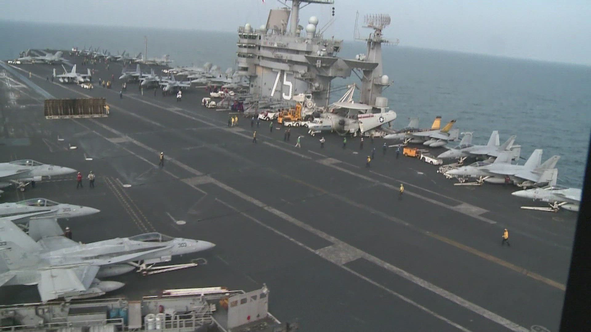 French and American aircraft carriers cooperate in Oman The French aircraft carrier the Charles de Gaulle is working alongside the American navy in the Persian Gulf-Arabian Sea region to ensure "security and stability". Images
