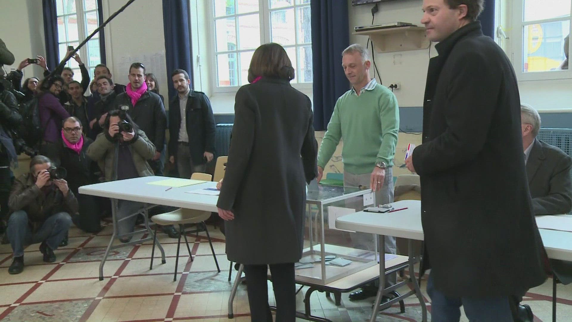 Paris mayor candidate Hidalgo casts her vote in first round The first round of municipal elections in France, seen as a test for President Francois Hollande's government, kicked off on Sunday morning. In the capital, fiery conservative former minister Nathalie Kosciusko-Morizet and left-wing Anne Hidalgo are vying for mayor's office, one of the most high-profile roles in French politics. Images of Hidalgo at the polls.