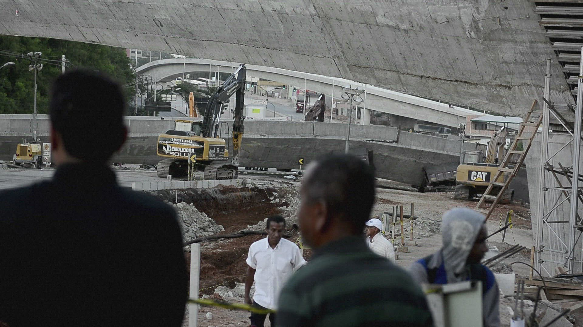 Work begins to remove fallen viaduct from road Work began to clear part of a fallen viaduct blocking a motorway in World Cup host city Belo Horizonte in southeastern Brazil on Monday. The unfinished overpass collapsed on 3 July killing at least two people and injuring 19. IMAGES