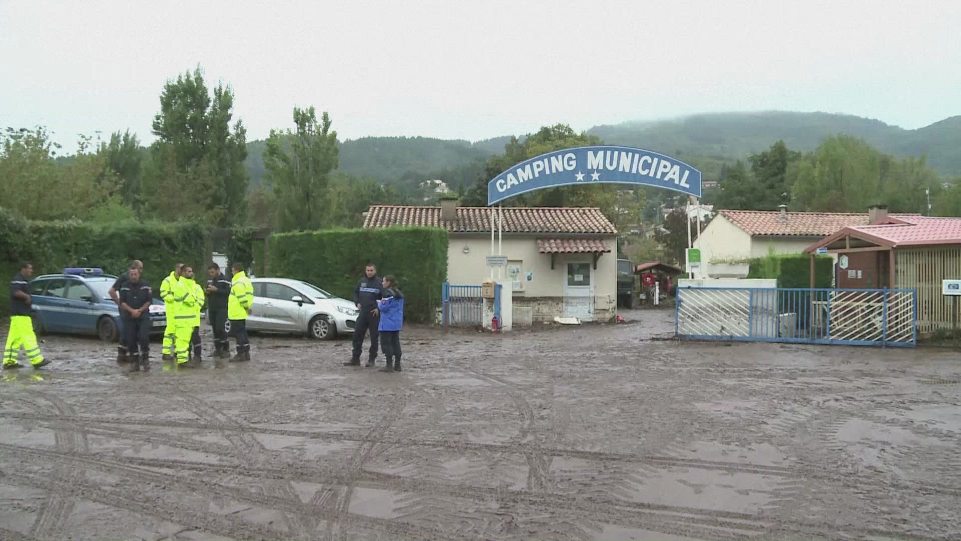 French minister visits campsite hit by floods French Interior Minister Bernard Cazeneuve visits the French campsite where four people died in floods. The site in Lamalou-les-Bains was devastated by the overnight flood as storms that had already killed an elderly lady in the nearby region of Aveyron also left a person missing in another neighbouring district. IMAGES AND SOUNDBITES.