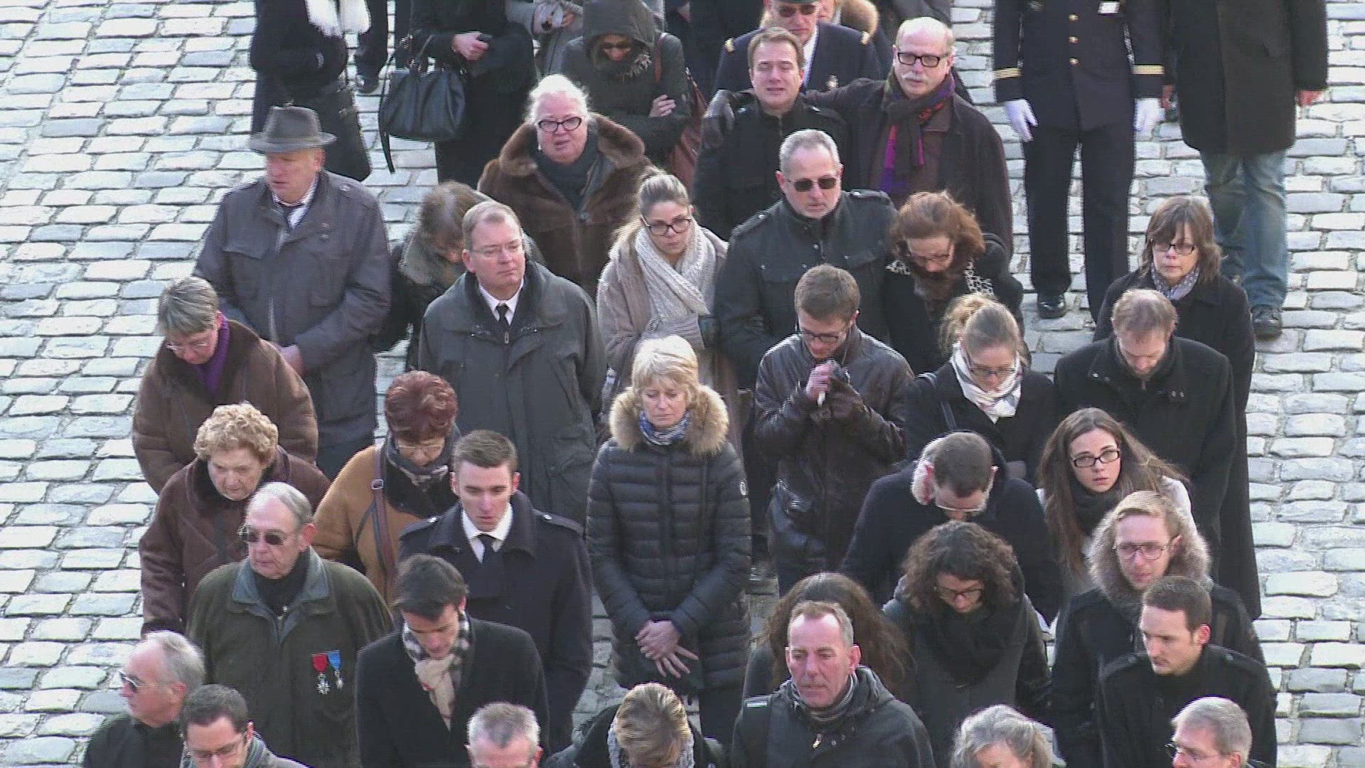 Hollande pays tribute to airmen killed in F-16 crash President Francois Hollande pays tribute to nine French airmen killed in an F-16 crash last week in Spain. Images.