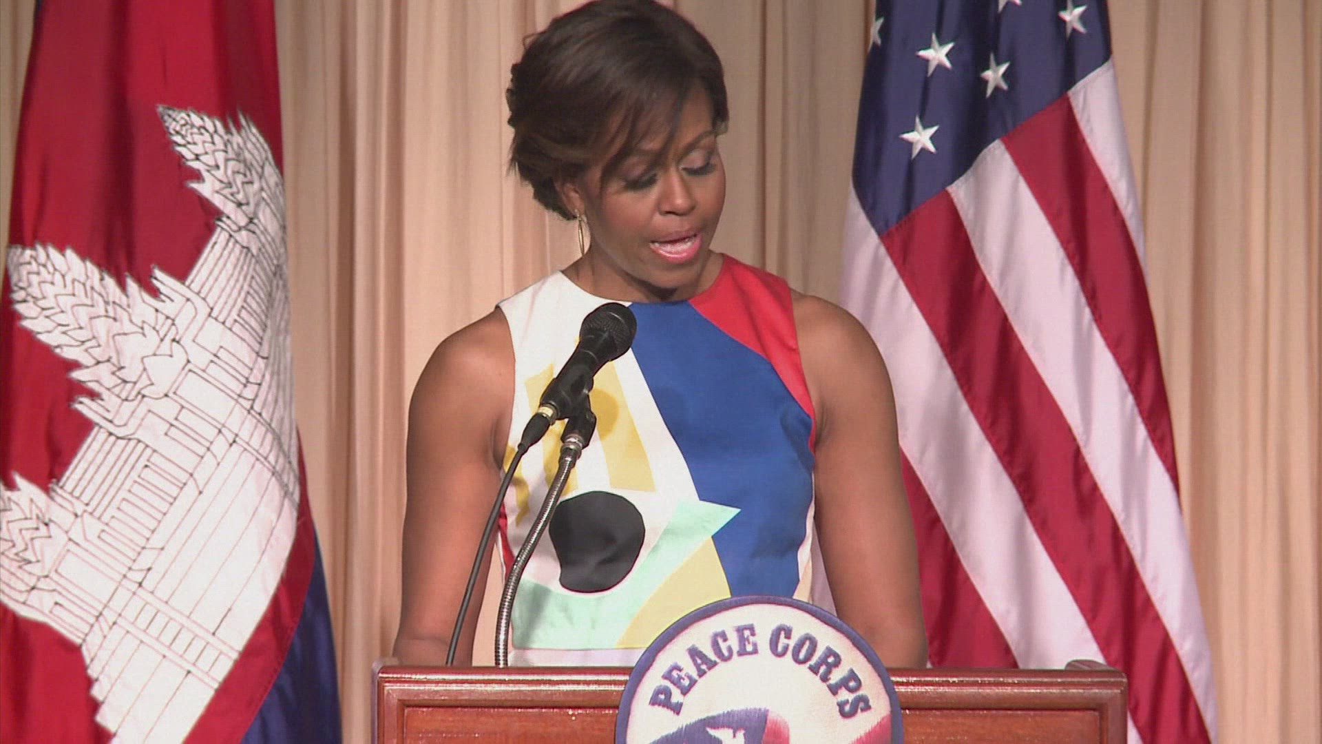 US first lady in first Cambodia trip Michelle Obama flew into Cambodia late Friday becoming the first wife of a sitting US president to visit the country, part of a two-nation trip to highlight the importance of girls' education. IMAGES