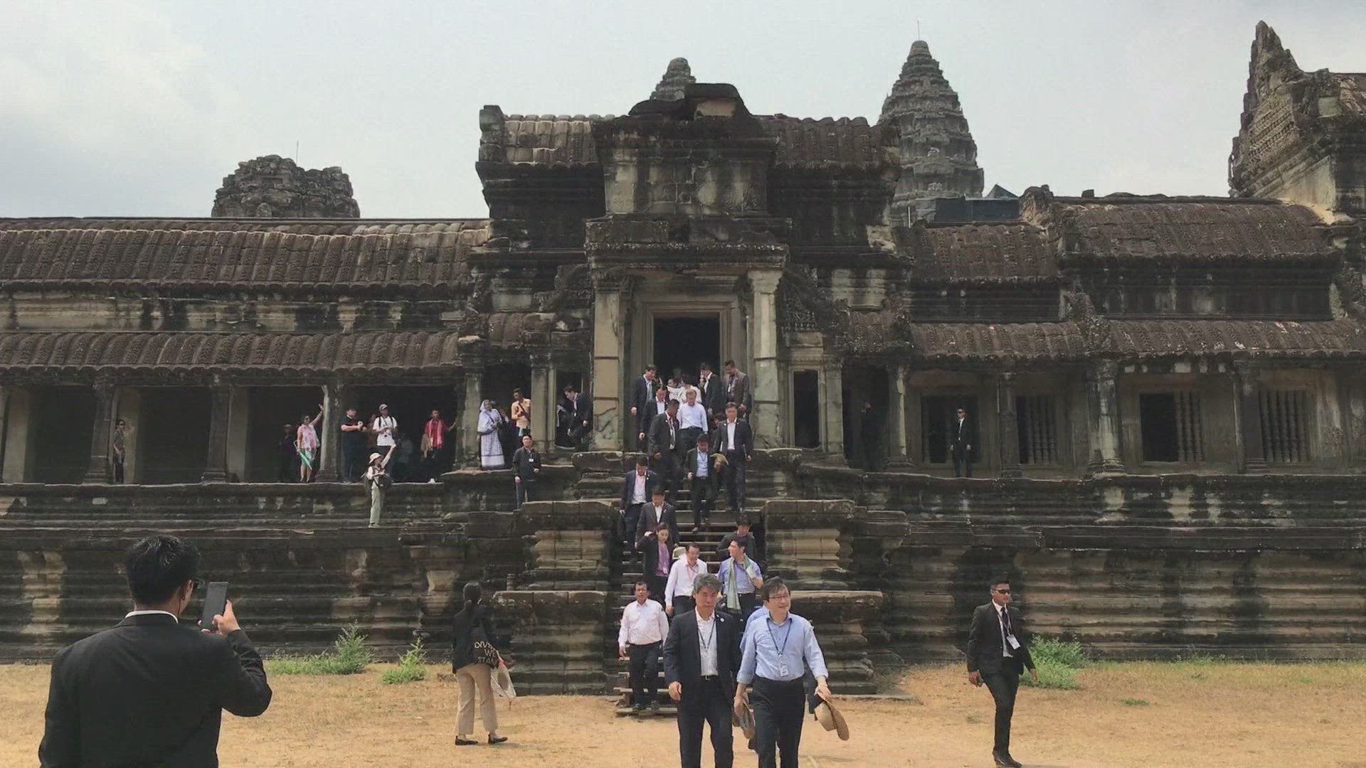 Michelle Obama's Cambodia trip focuses on girl's education US First Lady Michelle Obama pays a visit to the famous temple complex of Angkor Wat, during a trip to Cambodia which has largely focused on girls' education projects. IMAGES.