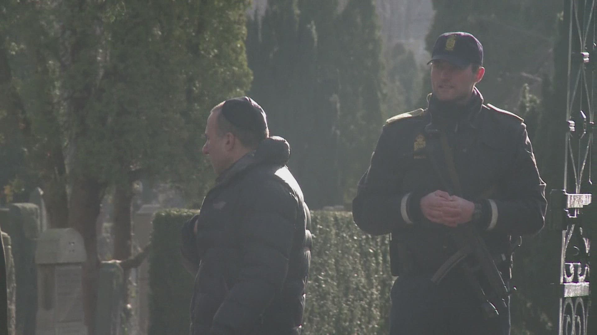 Denmark buries Jewish shooting victim Denmark burries a Jewish man killed in a weekend shooting spree as questions mount about whether more could have been done to prevent the attacks. IMAGES of the coffin and mourners