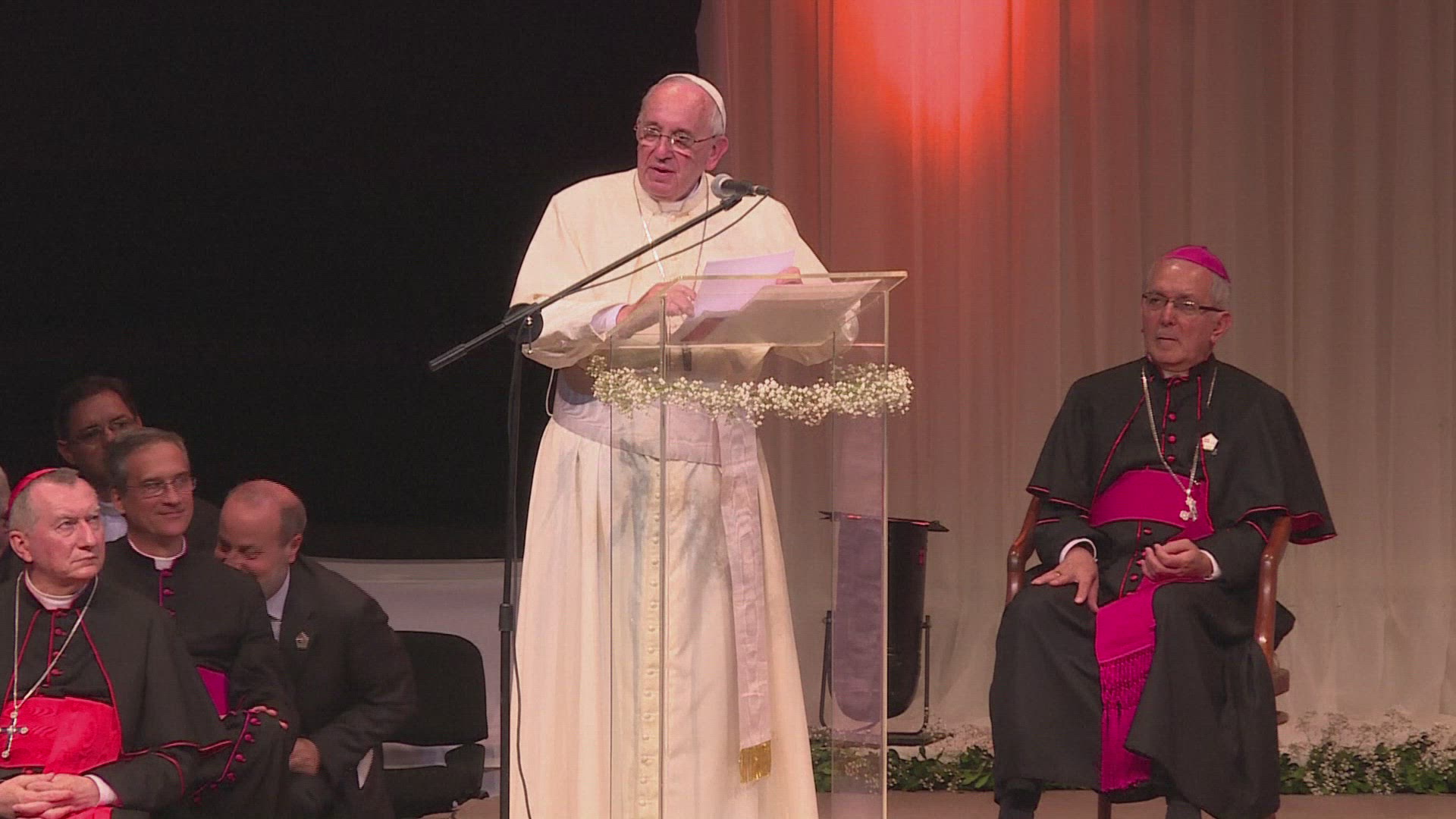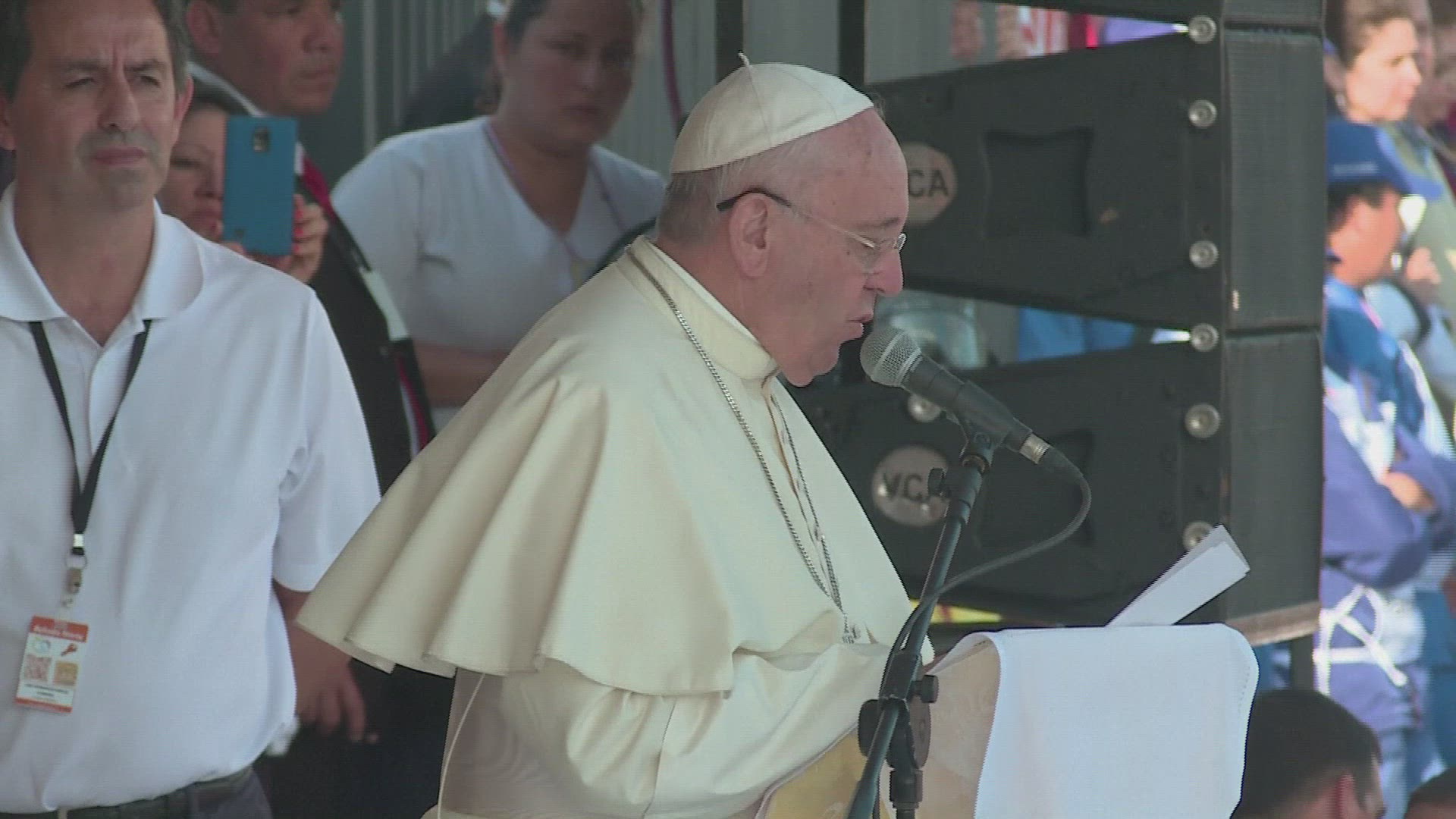 Pope Francis receives warm welcome from Ecuadoran President Ecuadoran President Rafael Correa gave a warm welcome to Pope Francis upon his arrival to the Mariscal Sucre International airport in Quito. The pope kicked off Sunday his first South American trip in two years that will also take him to Bolivia and Paraguay. IMAGES AND SOUNDBITES//COMPLETES VIDEO VID771708_EN//