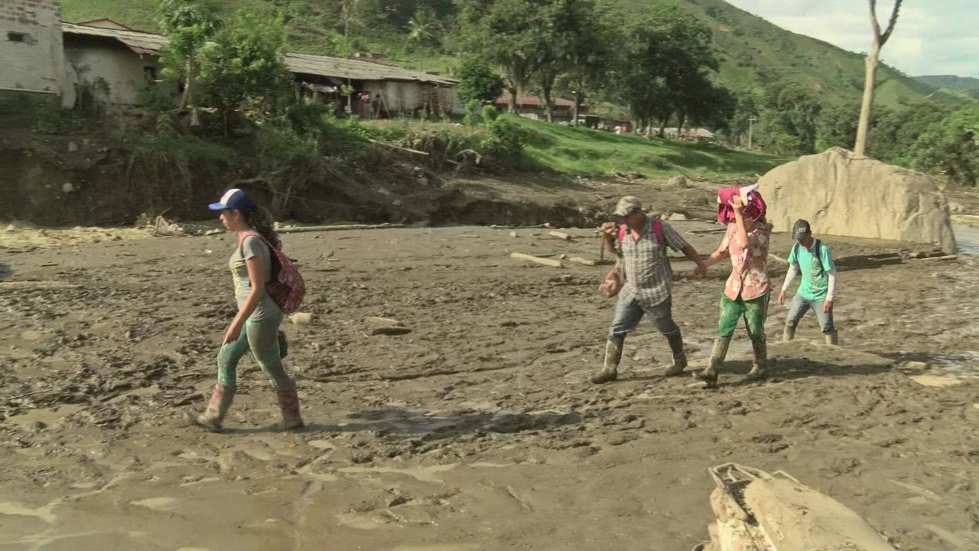 Humanitarian aid for Colombia landslide victims Victims of the landslide that left at least 83 people dead receive humanitarian aid and a visit from First Lady María Clemencia Rodríguez de Santos. IMAGES AND SOUNDBITES