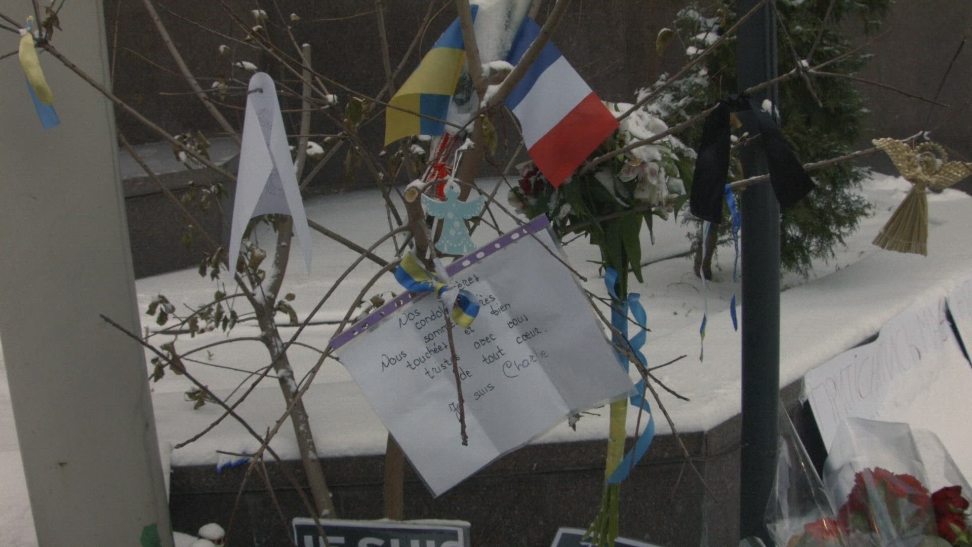 MH17: Paper plane tributes at the Dutch Embassy in Moscow At the Dutch Embassy in Moscow, people laid flowers and paper planes with the names of the victims of the MH17 plane crash, in tribute on the one year anniversary of the disaster. IMAGES AND SOUNDBITES