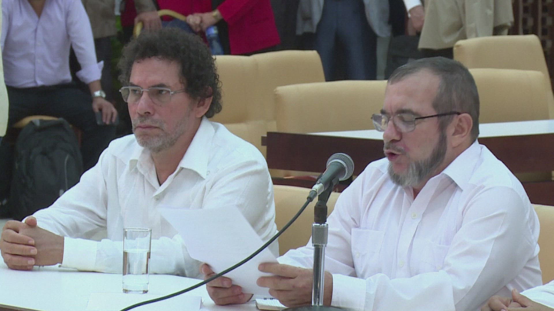 Colombians react after breakthrough in peace talks with FARC Colombians react after President Santos and FARC leader Timoleon "Timochenko" Jimenez vow peace within 6 months. IMAGES AND SOUNDBITES