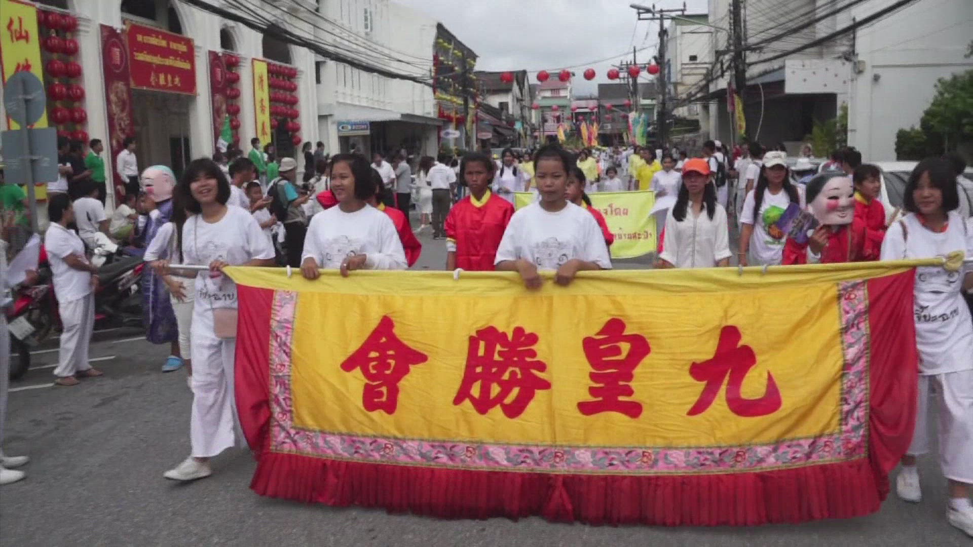 Gruesome piercing on show at Thai vegetarian festival Vegetarianism and gruesome body-piercing may seem an unlikely combination, but the two represent the peak of devotion at a bloody and spectacular annual Thai festival. IMAGES AND SOUNDBITES