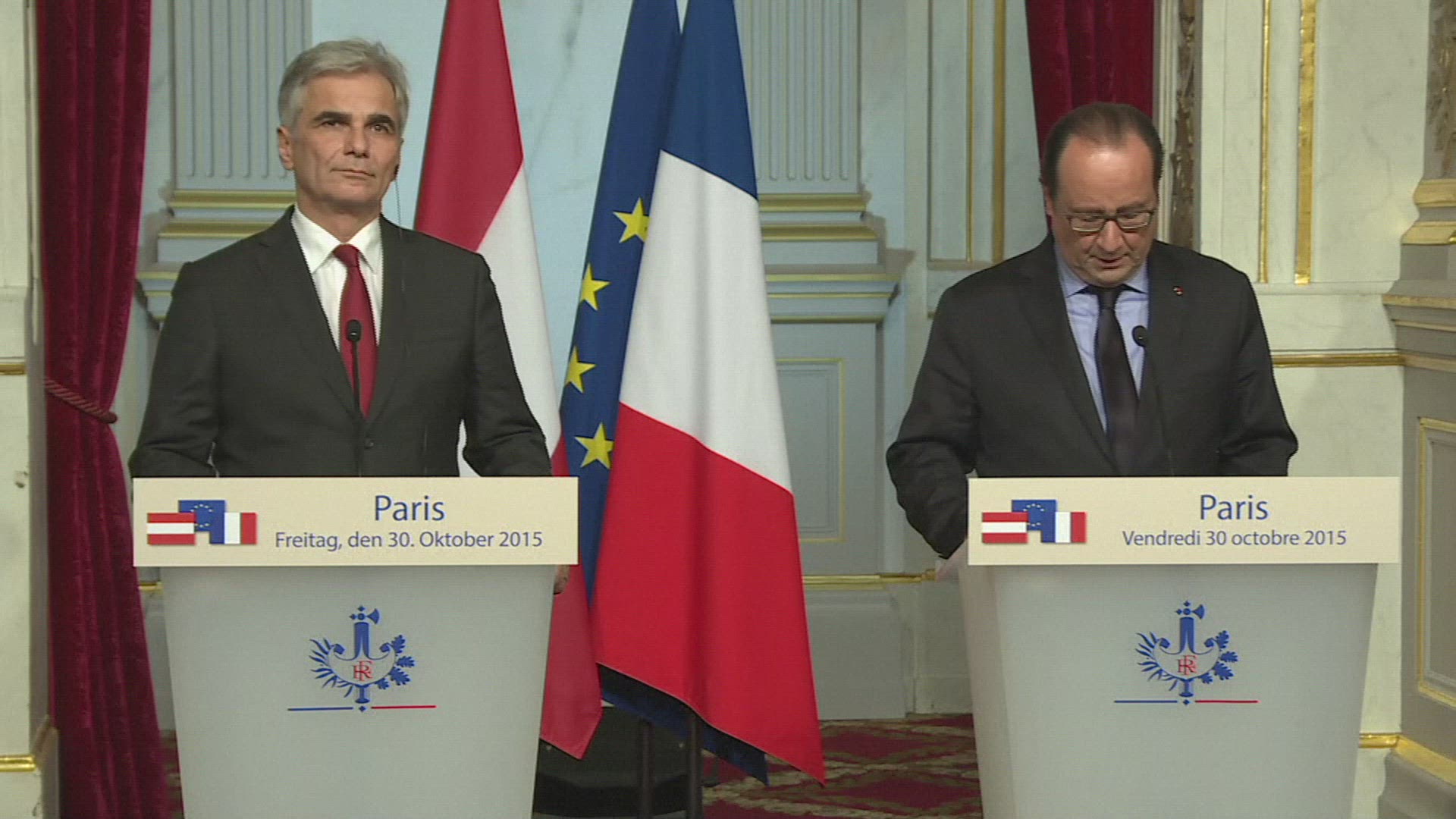 COP21: Francois Hollande receives Ban Ki Moon at Elysee Palace French President Francois Hollande received UN Secretary General Ban Ki Moon at the Elysee Palace on Sunday on the eve of the opening of the COP21 climate talks. IMAGES