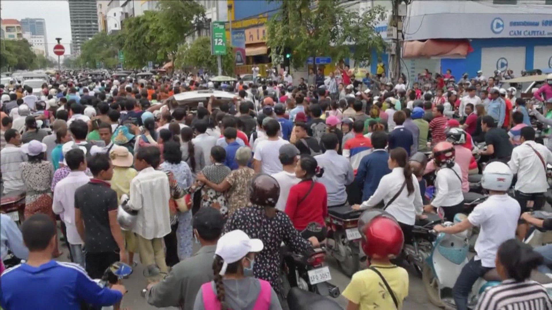 Kerry urges greater political freedoms in Cambodia US Secretary of State John Kerry on Tuesday urged Cambodia's leader Hun Sen to allow "vigorous but peaceful" political debate, following accusations that he silences opponents in a bid to extend his three-decade grip on power. IMAGES AND SOUNDBITES of Kerry.