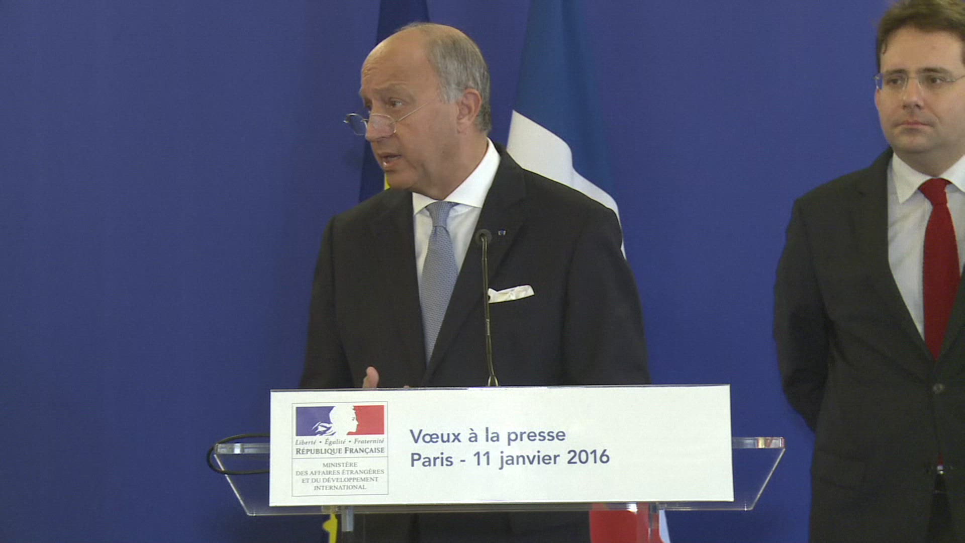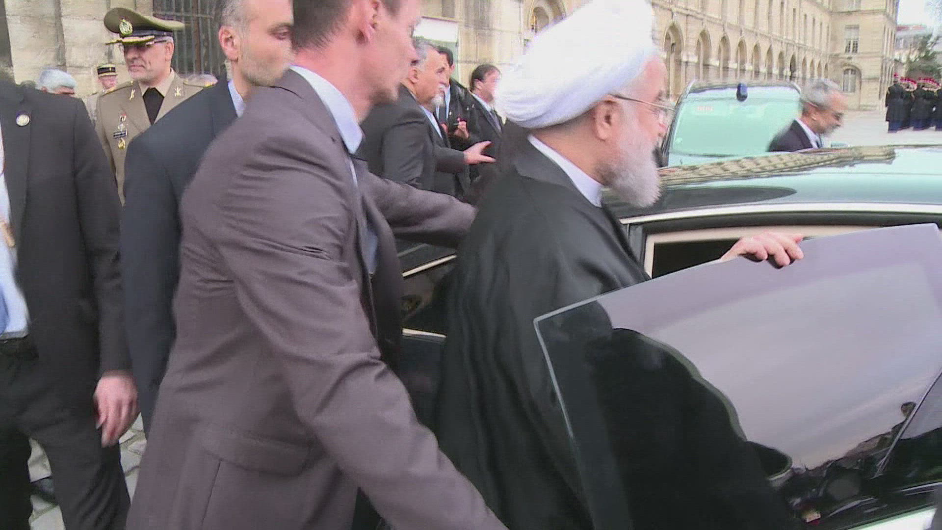 Iranian President Rouhani greeted by French FM Laurent Fabius Iranian President Hassan Rouhani is greeted by French Foreign Minister Laurent Fabius at Les Invalides in Paris. IMAGES