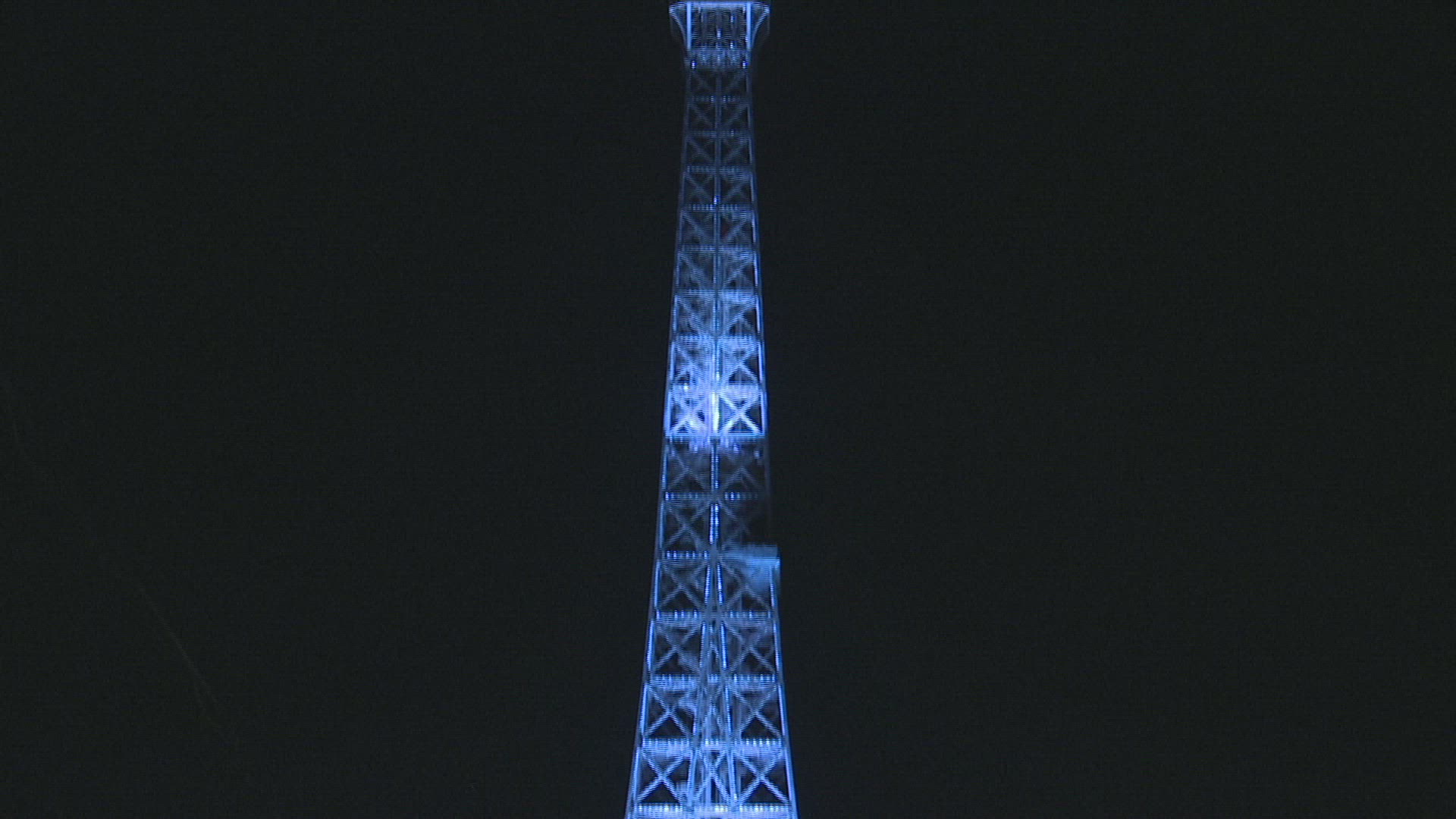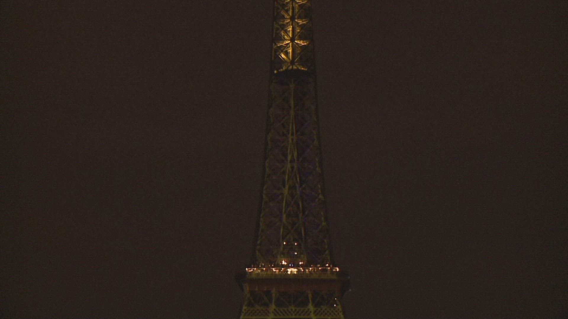 COP21: Eiffel Tower carries environmental message With a possible COP 21 agreement on the horizon, the Eiffel Tower is illuminated with the words "decarbonize", "1.5 degrees" , "Humanenergy" and "Climatesign" to urge the participants to find a compromise. IMAGES