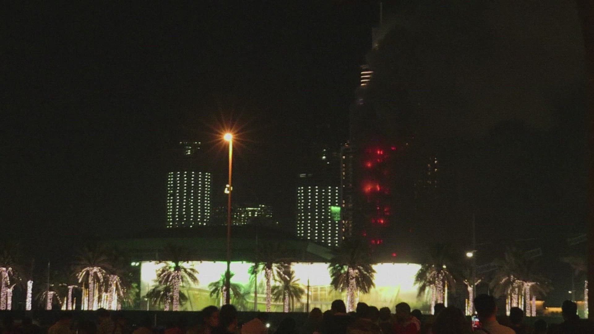 Huge fire erupts at Dubai hotel (2) A huge fire ripped through a luxury Dubai hotel Thursday night, injuring 16 people, just a few hours before the emirate celebrated the new year with a spectacular fireworks display nearby. IMAGES / TO COMPLETE: VID836115_EN