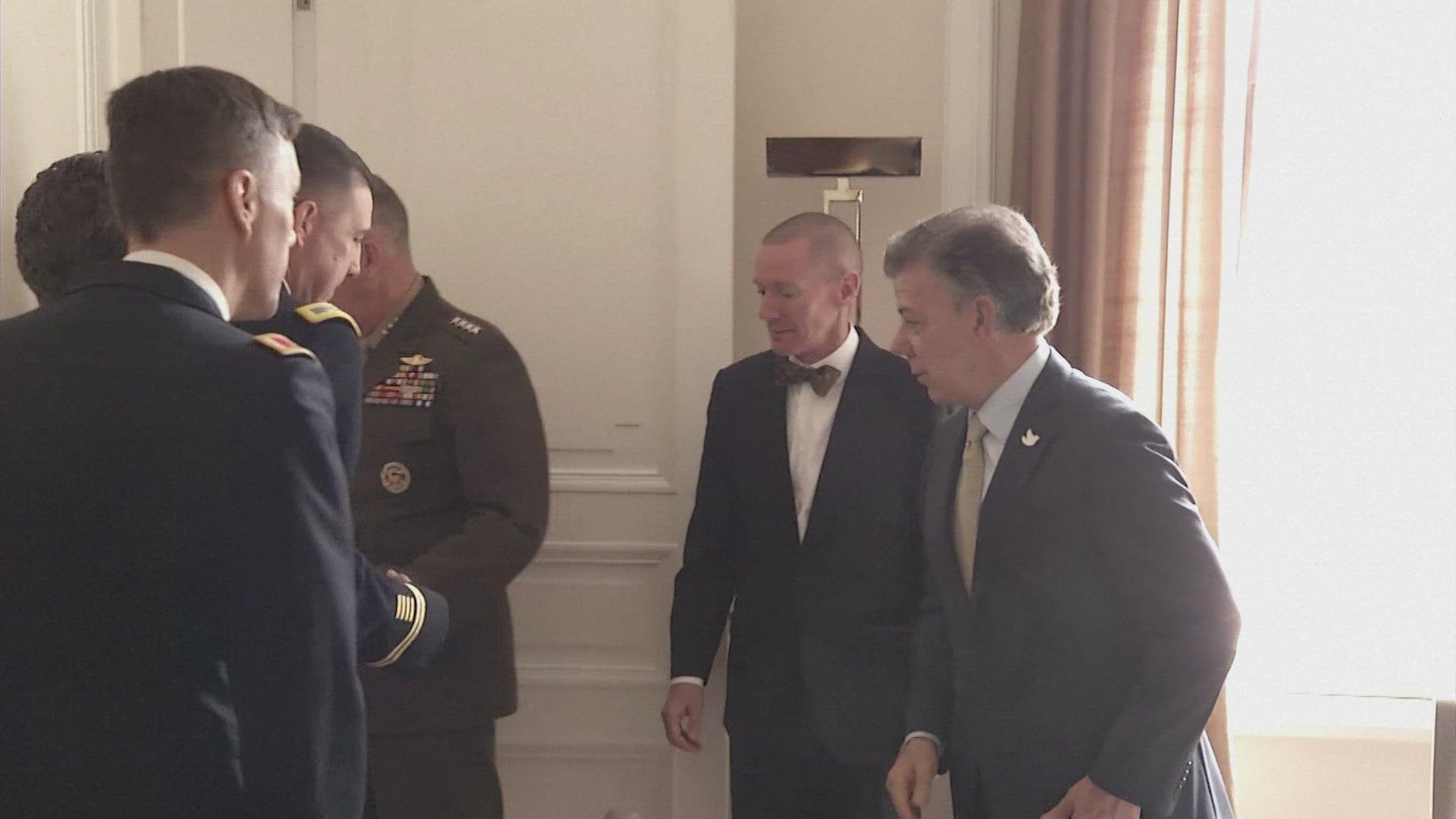 Colombian strikers march against Santos policies Activists march in Bogota as part of a national strike organized by labor unions to protest against the economic and social policies of President Juan Manuel Santos. IMAGES