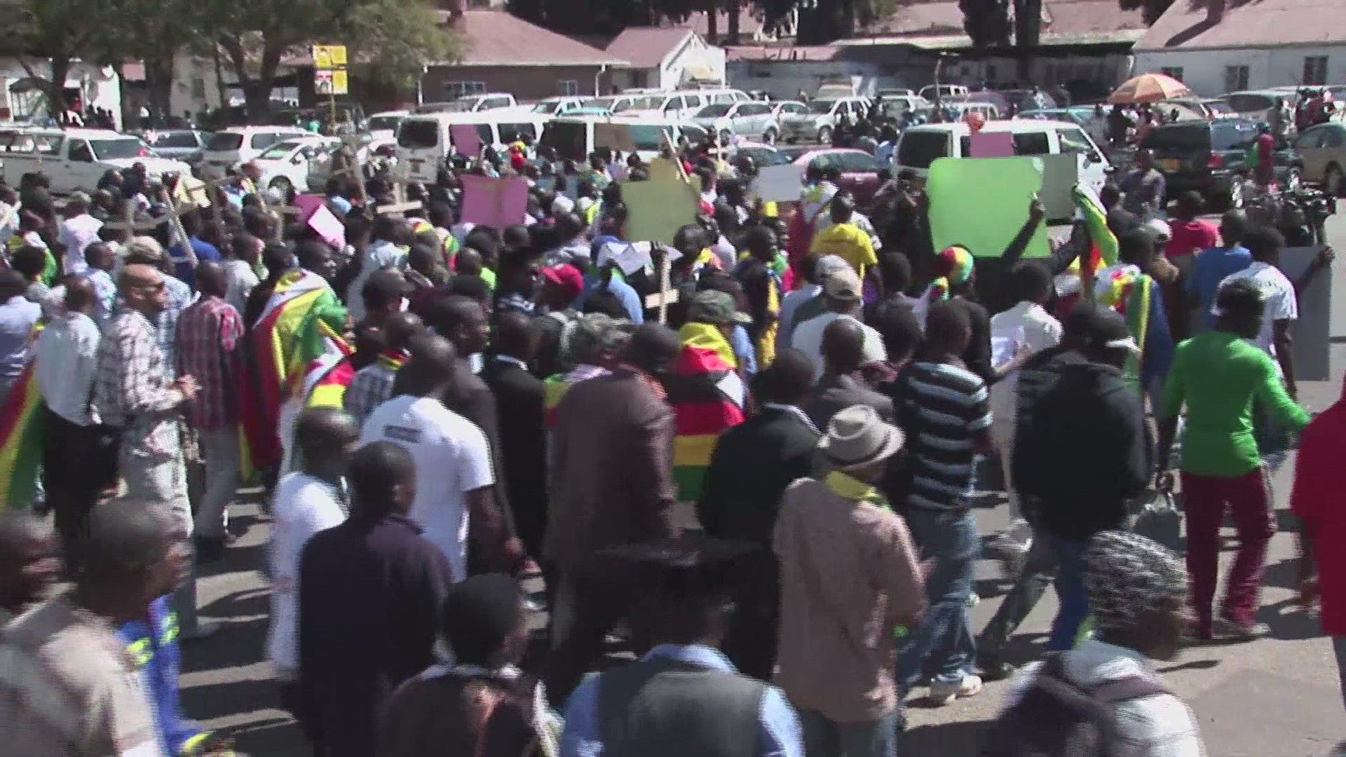 Zimbabwe holds largest anti-Mugabe protest in years Demonstrators in Zimbabwe hold the largest protest against President Robert Mugabe in nearly a decade, marching through central Harare demanding that the 92-year-old leader make a "dignified exit." IMAGES AND SOUNDBITES (COMPLETE VID875840_EN)