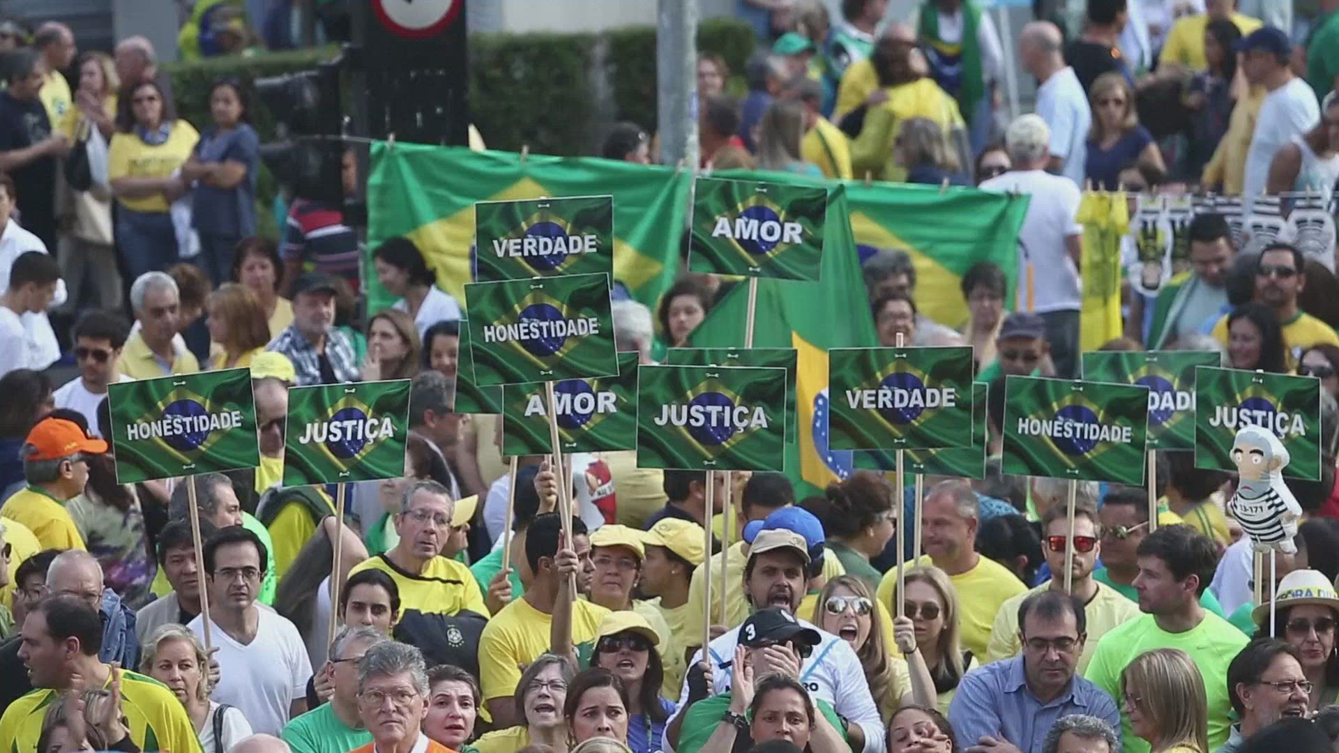 'Freedom is everything': Sao Paulo anti-impeachment protester Brazilians gather in Sao Paulo on Sunday to take part in a demonstration against the impeachment of President Dilma Rousseff. IMAGES AND SOUNDBITES