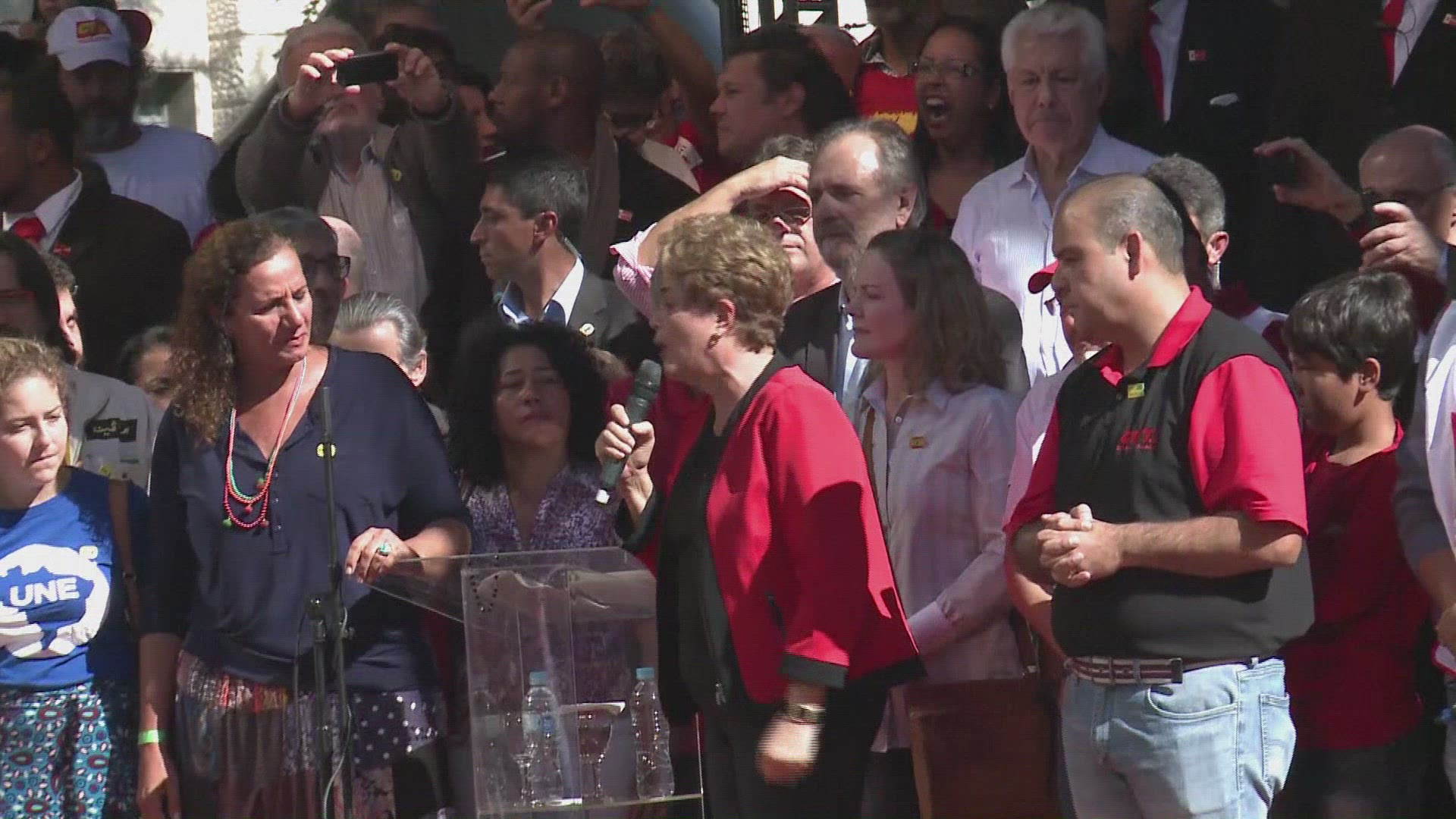 Rousseff rallies Brazil anti-impeachment crowd Brazil's embattled leftist President Dilma Rousseff vowed at a protest Sunday to go down fighting ahead of what could be her final full week in power before impeachment. IMAGES AND SOUNDBITES//COMPLETES VID882798_EN//