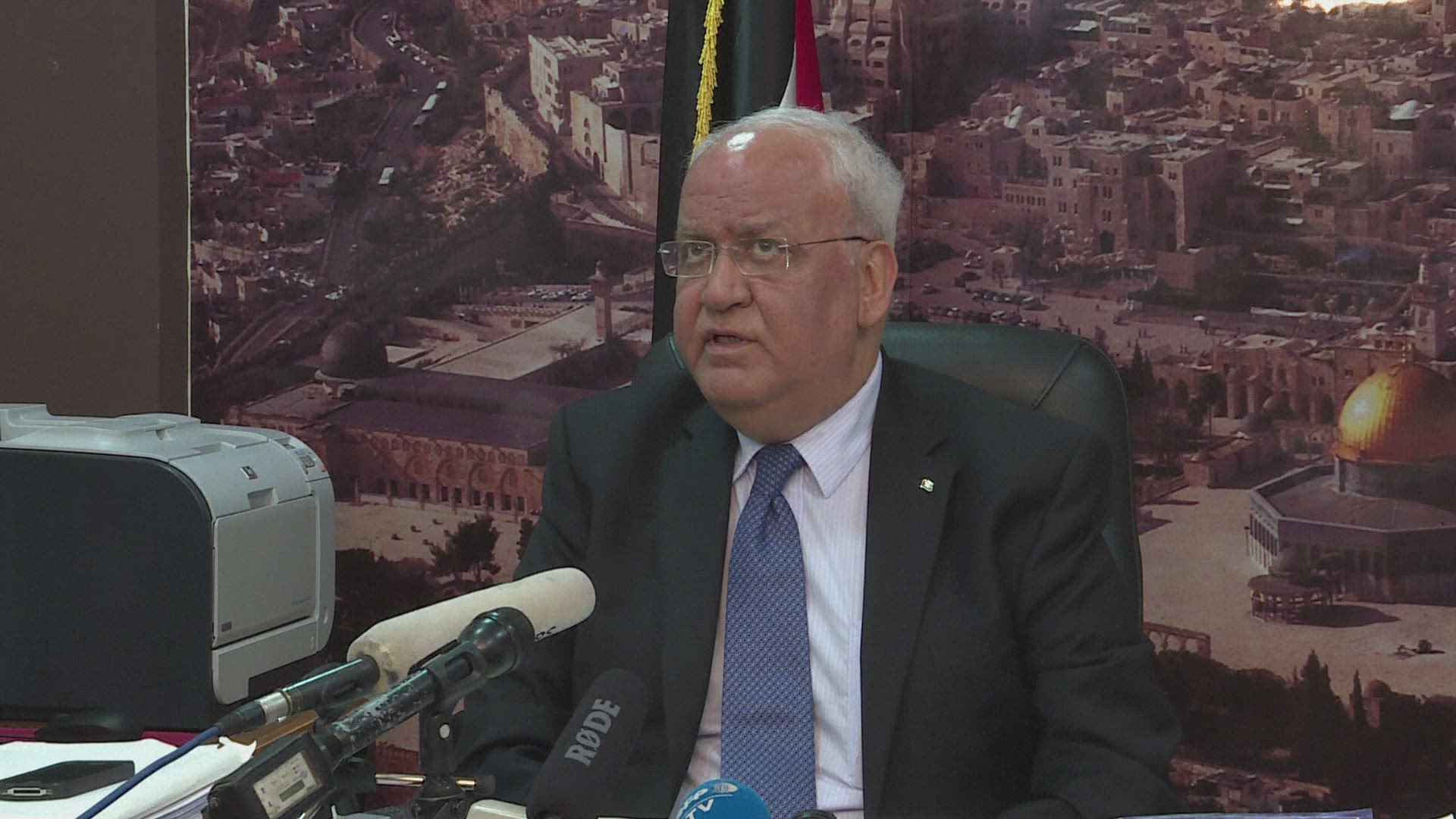 PLO announces intention to re-define relations with Israel Palestinian chief negotiator and top PLO official Saeb Erekat announces during a press conference at the Palestinian presidential palace after a PLO executive committee meeting the intention to re-define relations with Israel. IMAGES AND SOUNDBITES