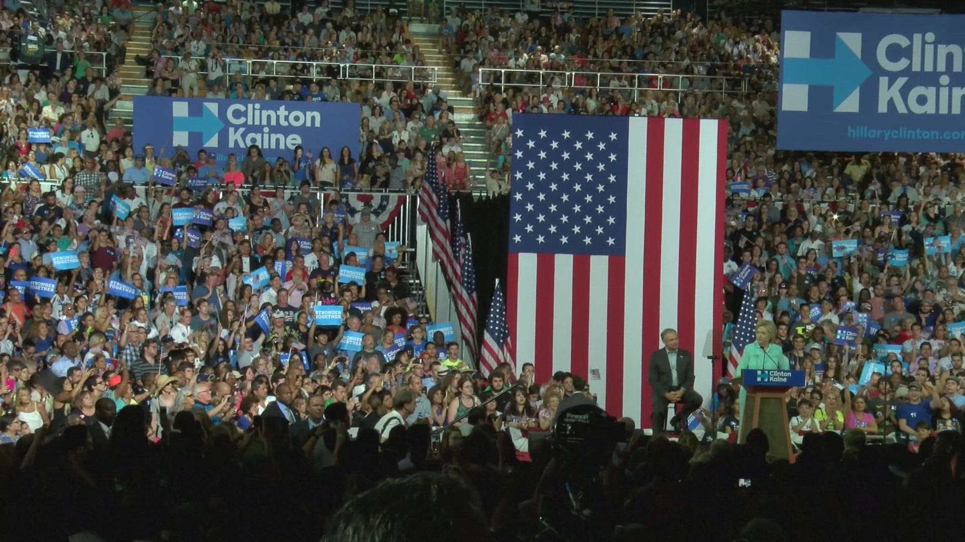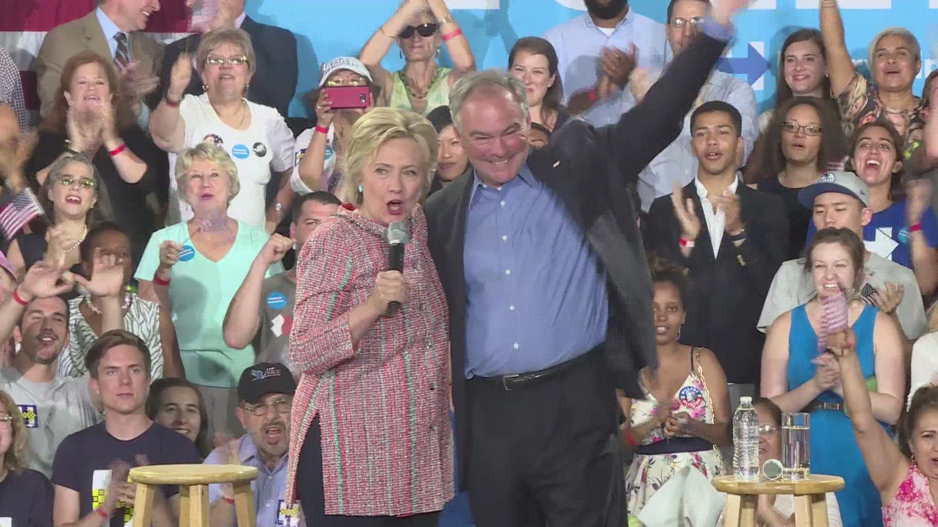 Voters brave the heat for Clinton and Tim Kaine As the Republican and Democratic Conventions approach, presumptive presidential nominees Donald Trump and Hillary Clinton are readying their vice presidential choices. The presumptive Democratic nominee campaigns with her potential vice president pick Tim Kaine in Virginia.