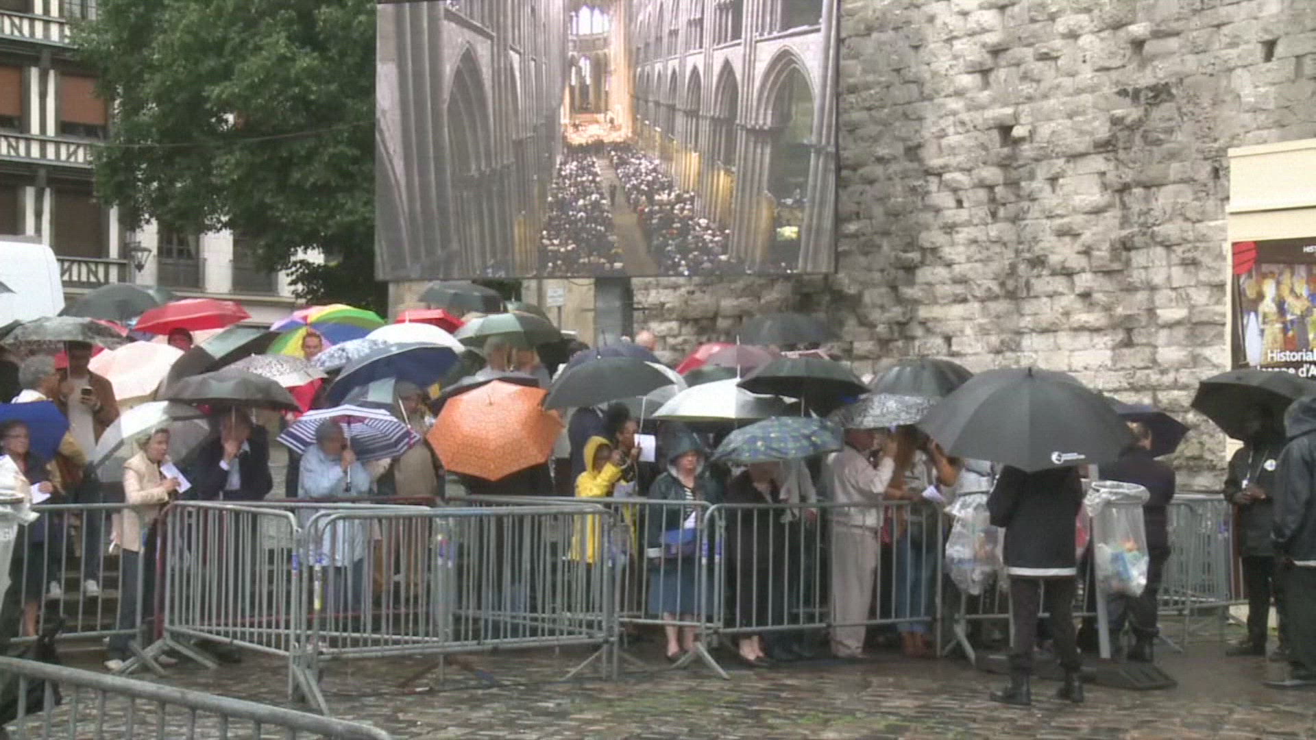 Mourners react as France lays to rest priest slain by jihadists France paid its last respects Tuesday to Father Jacques Hamel, the 85-year-old priest murdered by jihadists last week, at an emotional funeral held under tight security at Rouen cathedral in northern France. IMAGES AND SOUNDBITES with mourners after the mass