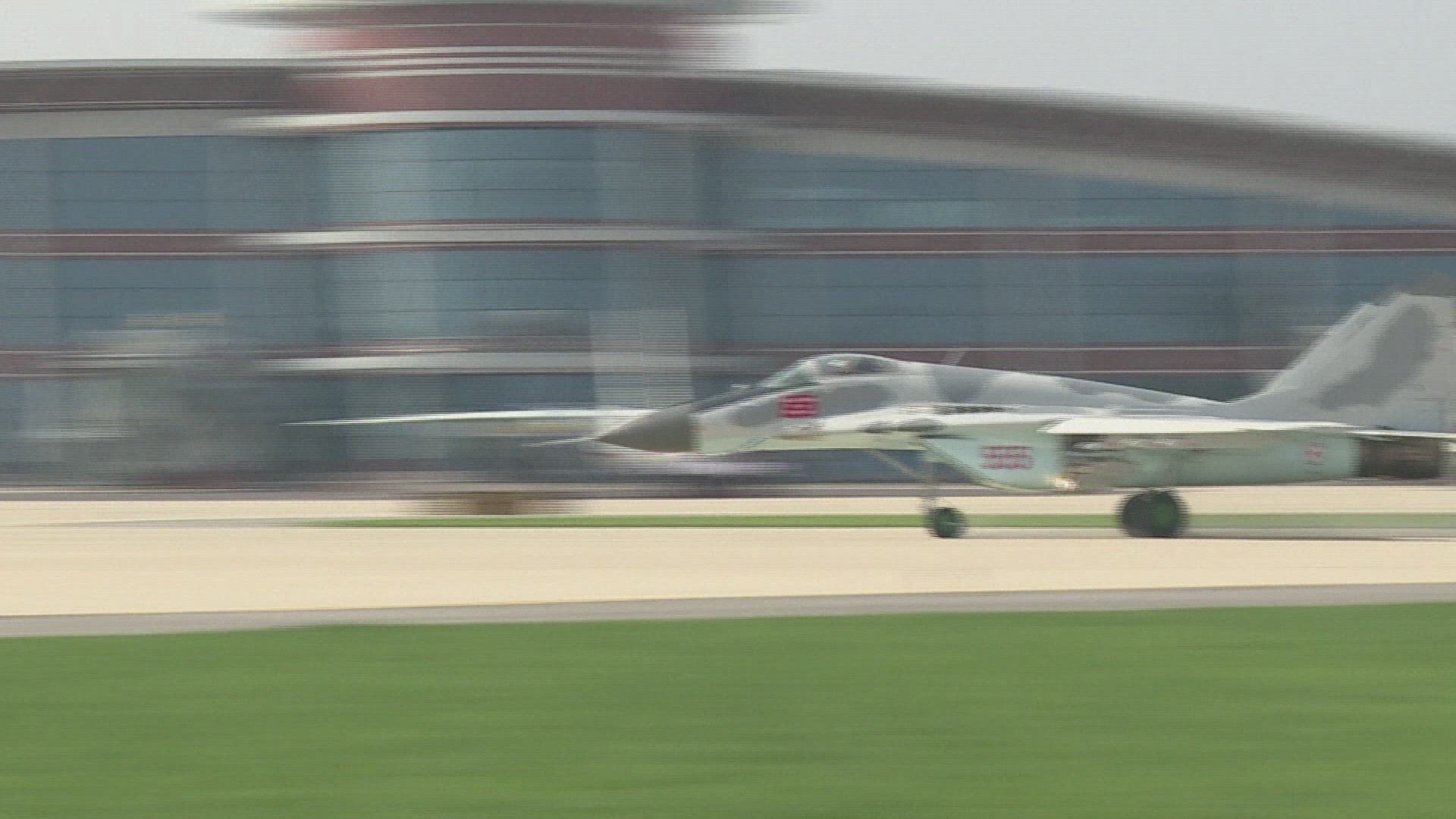 Farnborough air show takes off with F-35 fighter jets The Farnborough air show takes off amid turbulence from both Britain's shock EU exit referendum and ultra-low oil prices. F-35 Lightning II stealth fighters are the centrepiece to this year's show, with the supersonic jets capable of short takeoffs and vertical landing. IMAGES.