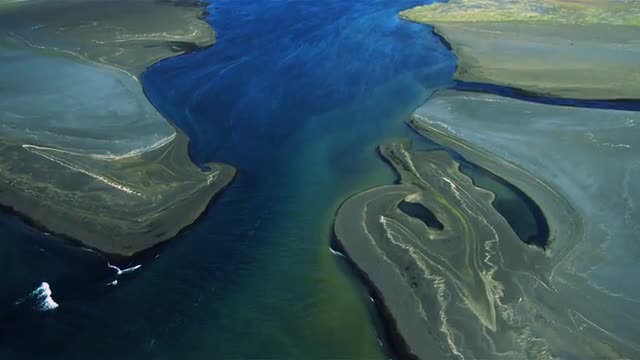 > Aerial View of the Coastline Leading to a River Delta, Iceland