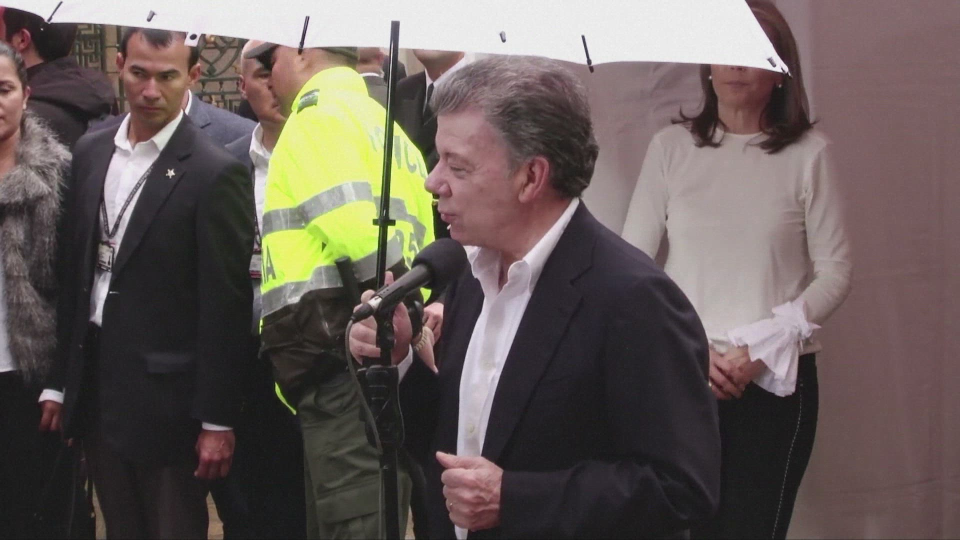 Colombian President Santos arrives in UK for state visit Colombian President Juan Manuel Santos and his wife arrive in London for a state visit to the UK, the first ever by a Colombian president. IMAGES