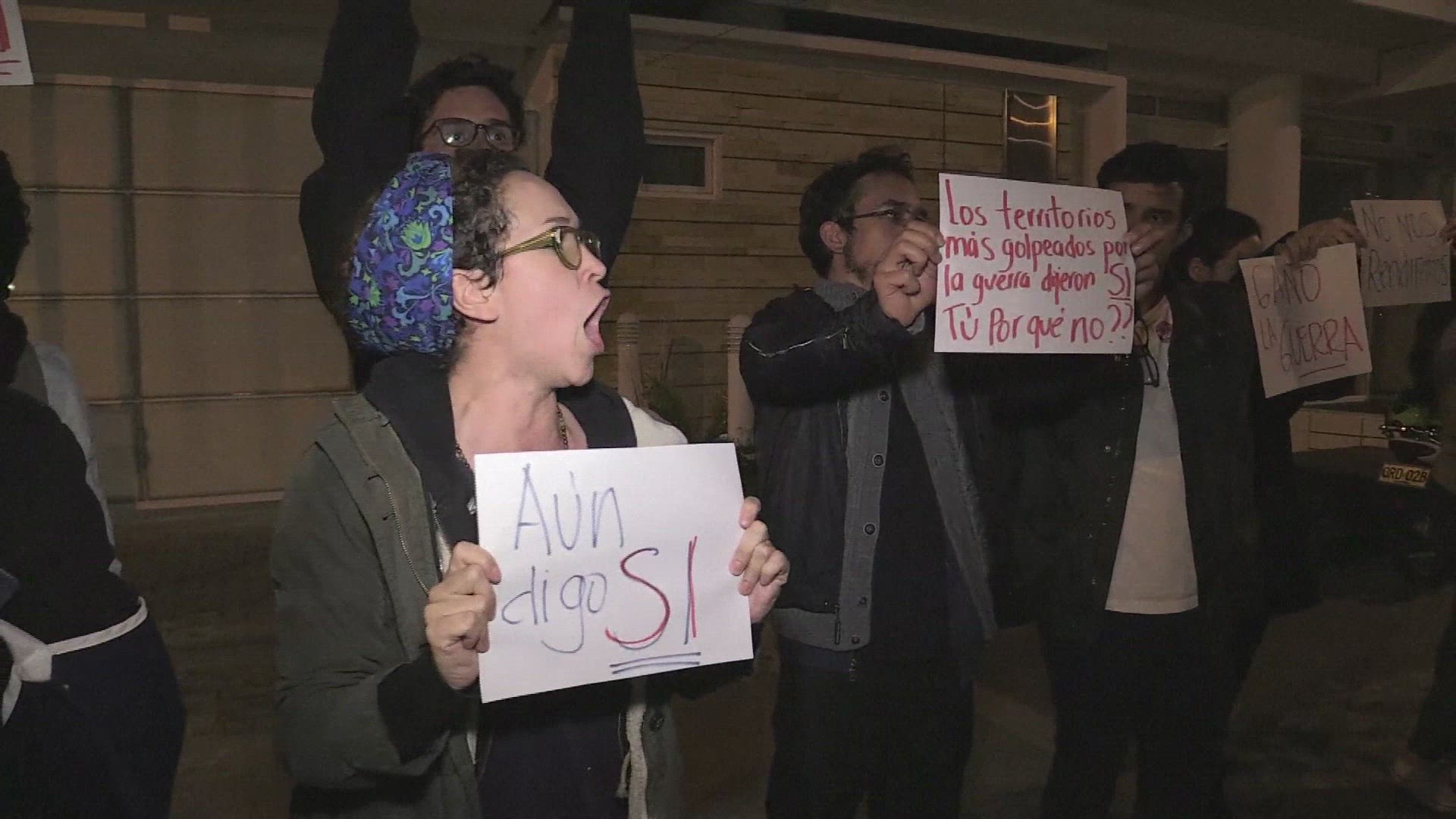 Colombia 'NO' and 'YES' supporters clash post referendum result 'Yes' and 'No' supporters faced each other in Bogota in a spontaneous protest at the headquarters of the party of former president and leader of the 'No' vote Alvaro Uribe, after Colombians rejected a peace deal between their government and communist FARC rebels Sunday. IMAGES