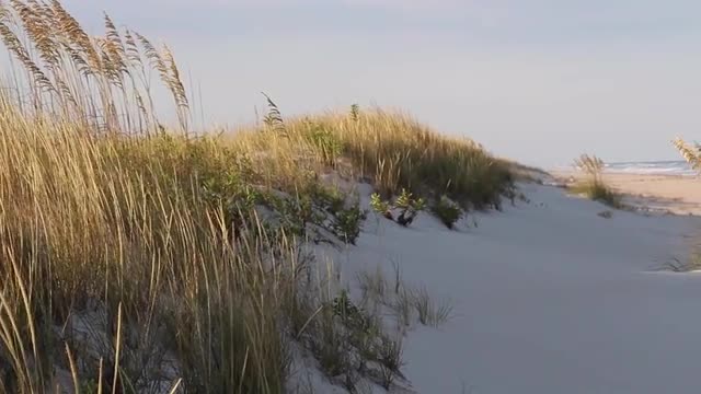 Empty beach pan from sand dunes to ocean