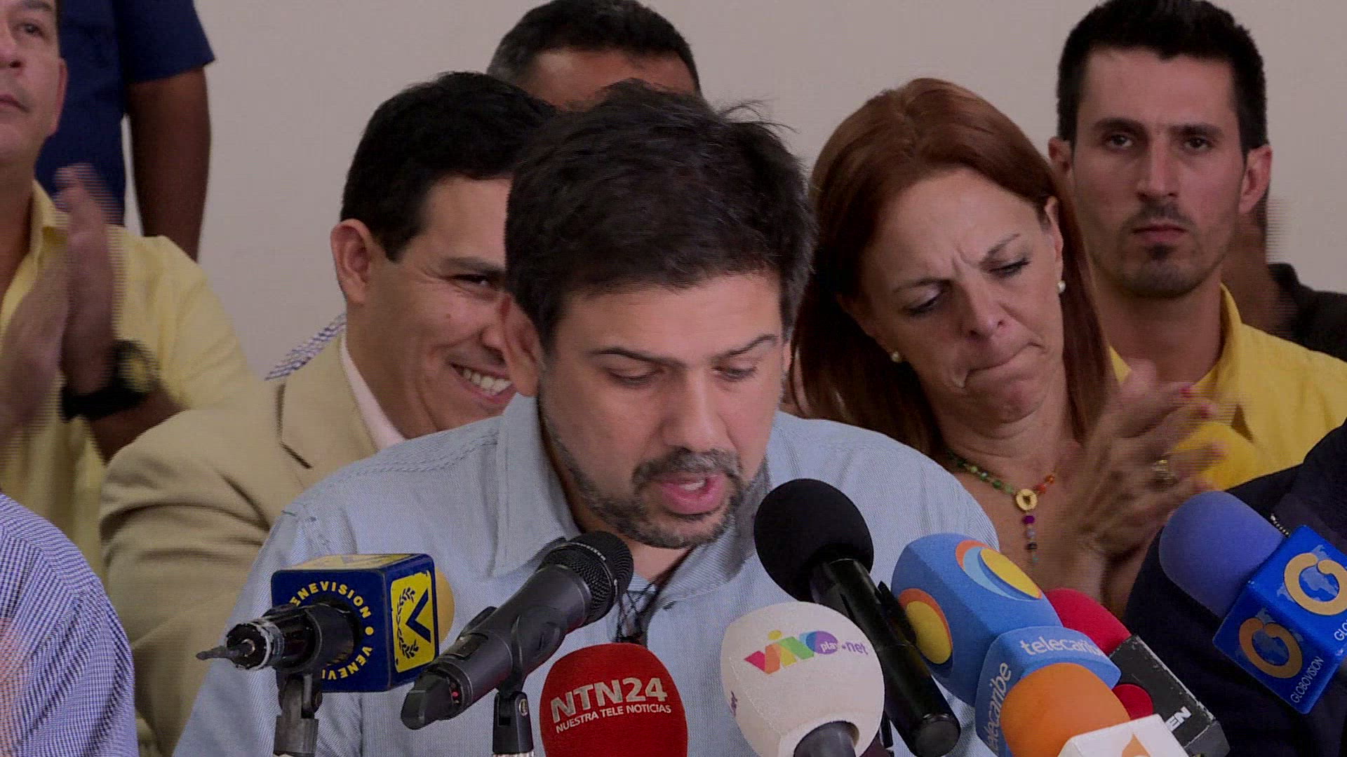 Venezuelan opposition legislators react to court ruling Lawmakers from opposition parties in Venezuela react after the country's high court ordered them to drop plans for a political trial against President Nicolas Maduro, whose rivals blame him for food shortages in the volatile country. IMAGES AND SOUNDBITES