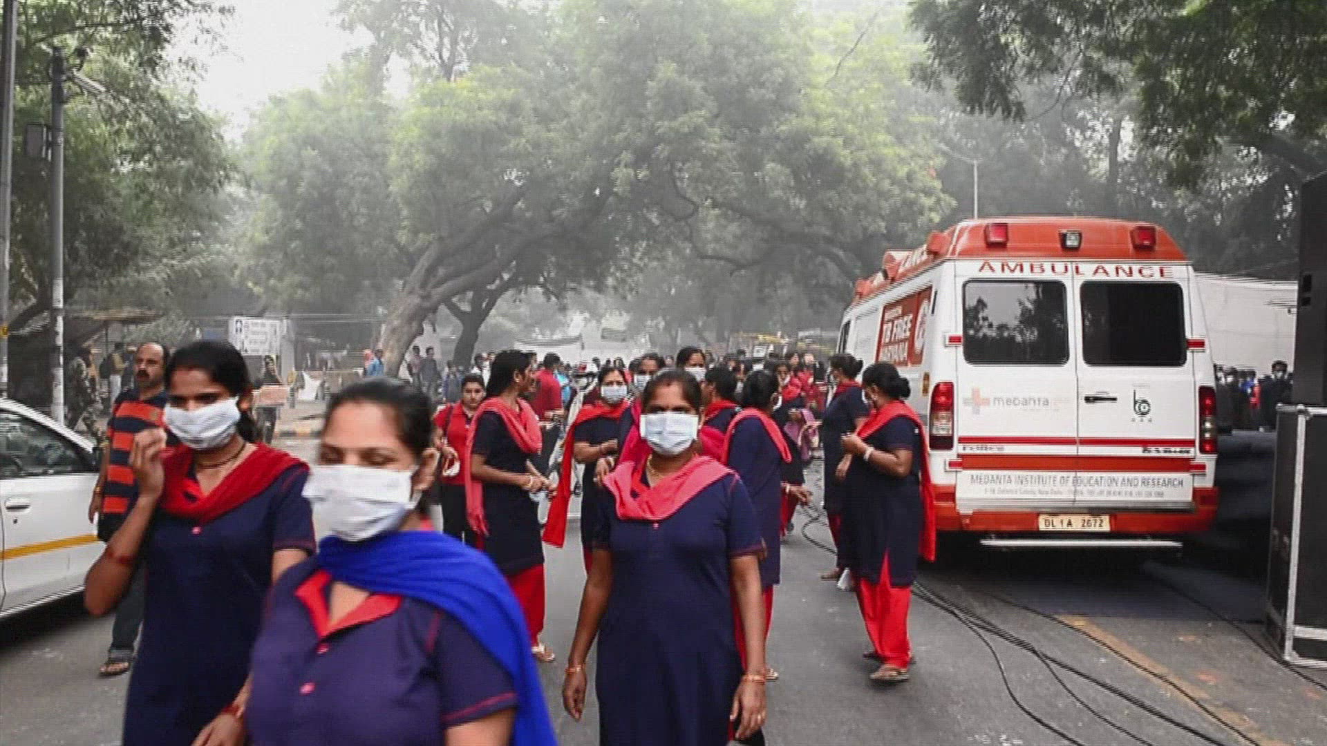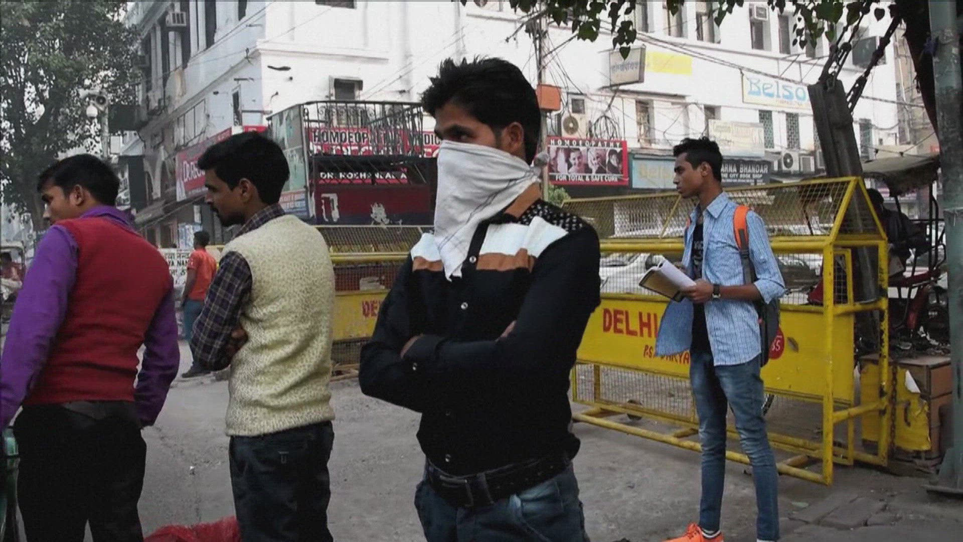 Protest in New Delhi over high pollution levels People protest in New Delhi calling for action over the city's high levels of pollution which have lead to the closure of 1,800 schools as thick smog blanketed the city for several days. IMAGES