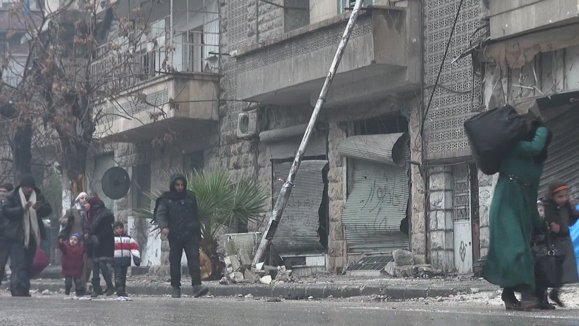 Caught in the middle of the Aleppo maelstrom Najah and her 80-year-old husband Mohammed can barely believe the fighting is over in their district of Aleppo, where they spent years on one of the city's most dangerous front lines. IMAGES AND SOUNDBITES