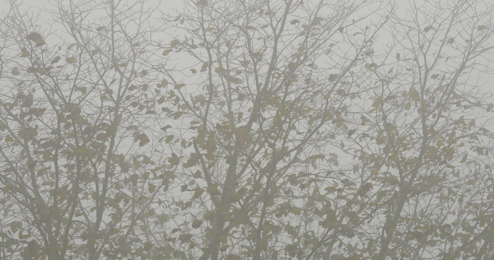 > Solo Yellow Tree in Pine Forrest. Fog rolling in. 5k RAW. 1080 444