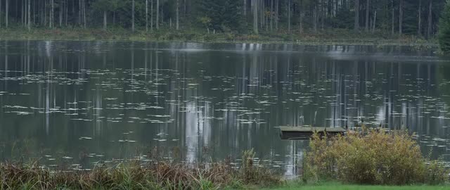 A still pond with Lillypads framed by a Pine tree. Pro Res 444. Shot on Red Epic 5k Raw