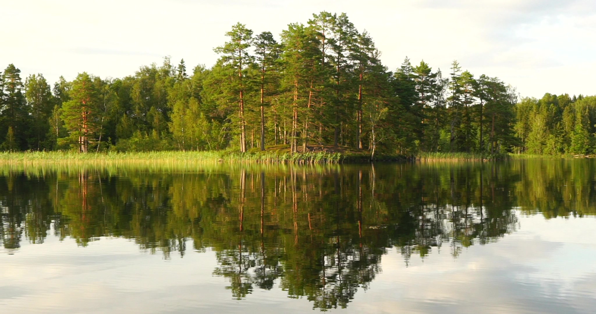 A still pond showing a boat reflecting in its waters with lillypads. Shot on Red Epic MX 5k Raw