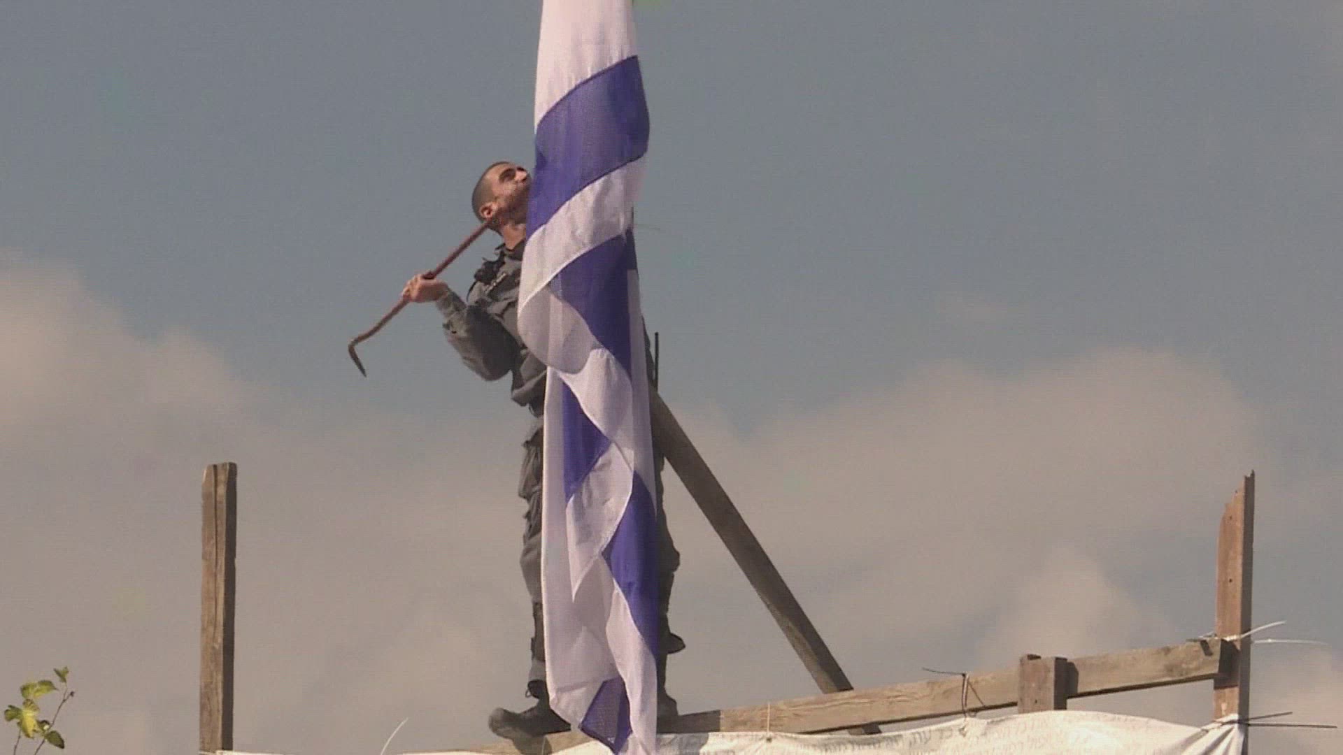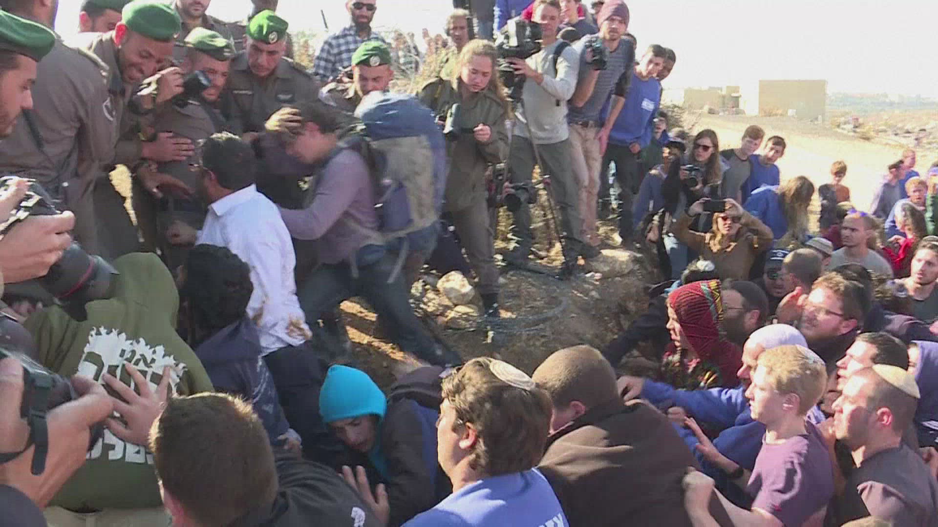 Scuffles erupt as Israel evicts settlers from WBank outpost (2) Israeli police were evicting dozens of hardline Jewish settlers from a wildcat outpost on Wednesday, just hours after unveiling plans for 3,000 new homes in other West Bank settlements, with scuffles erupting and youths barricading themselves inside houses. IMAGES AND SOUNDBITES
