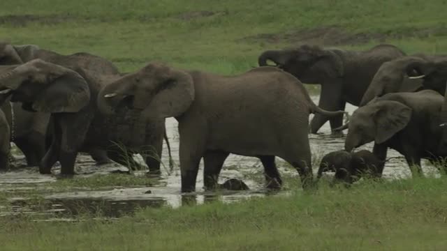 288581 - Elephant herd walks through marsh