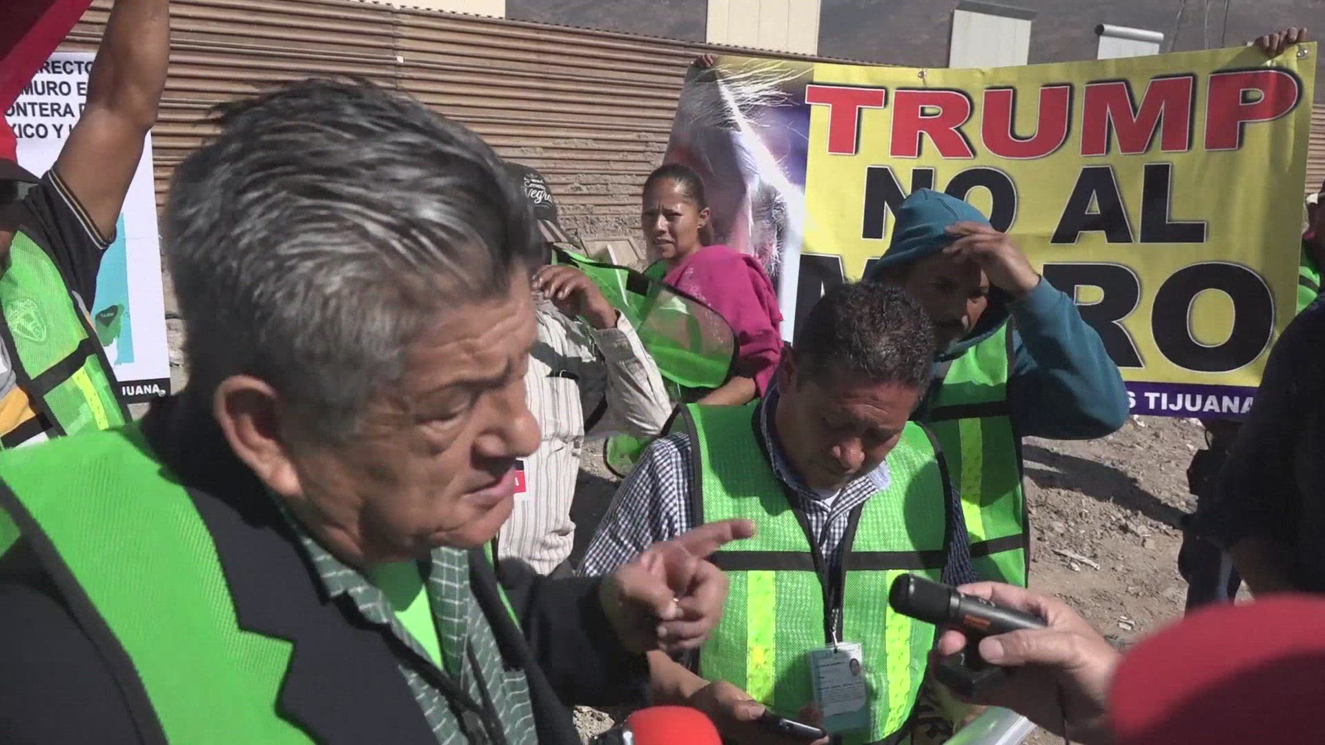 Human wall on Mexico-US border in Trump protest (2) With arms folded and armed with flowers, thousands of Mexicans form a "human wall" on the border with the United States, in protest against President Donald Trump's plan to build a major barrier there to prevent the passage of undocumented immigrants. IMAGESTO COMPLETE VID995167_EN