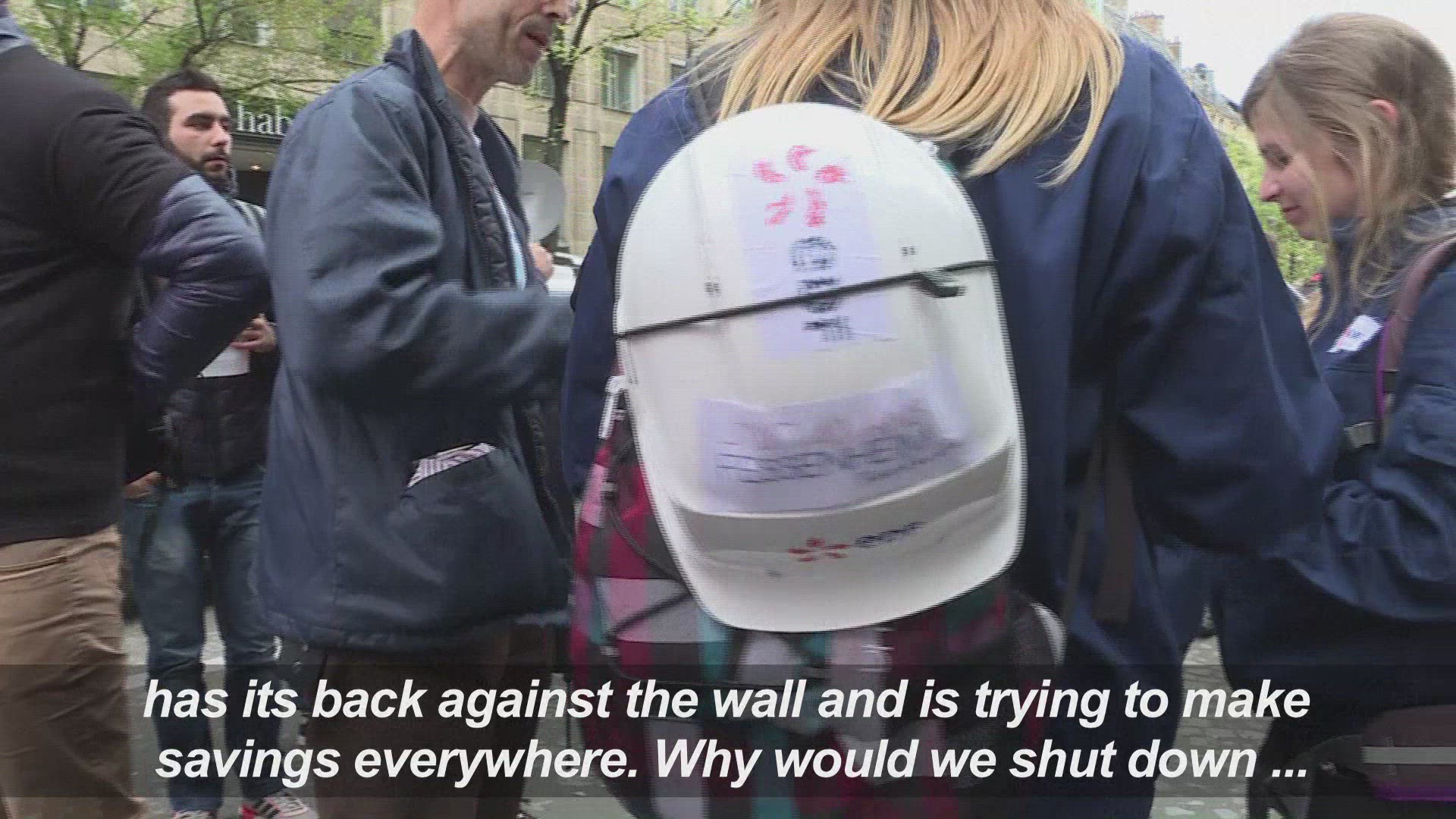Paris: Nuclear plant employees protest against closure Hundreds gathered in front of French electricity giant EDF's headquarters on Thursday to protest the closure of Fessenheim nuclear plant, the country's oldest nuclear power station, as board members met to decide its fate. IMAGES AND SOUNDBITES