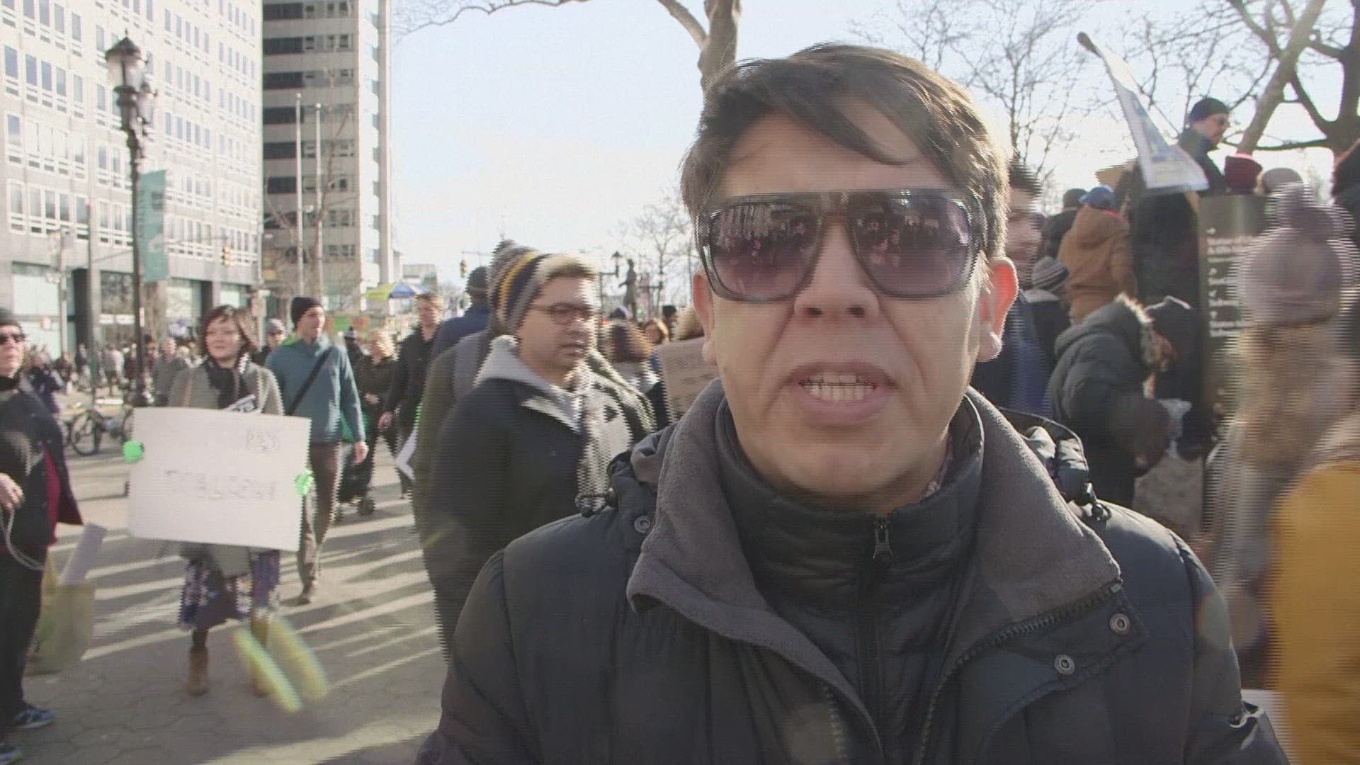 Thousands protest Trump inauguration in New York Thousands of people gathered in New York to protest against the inauguration of Donald Trump as President of the United States. IMAGES AND SOUNDBITES