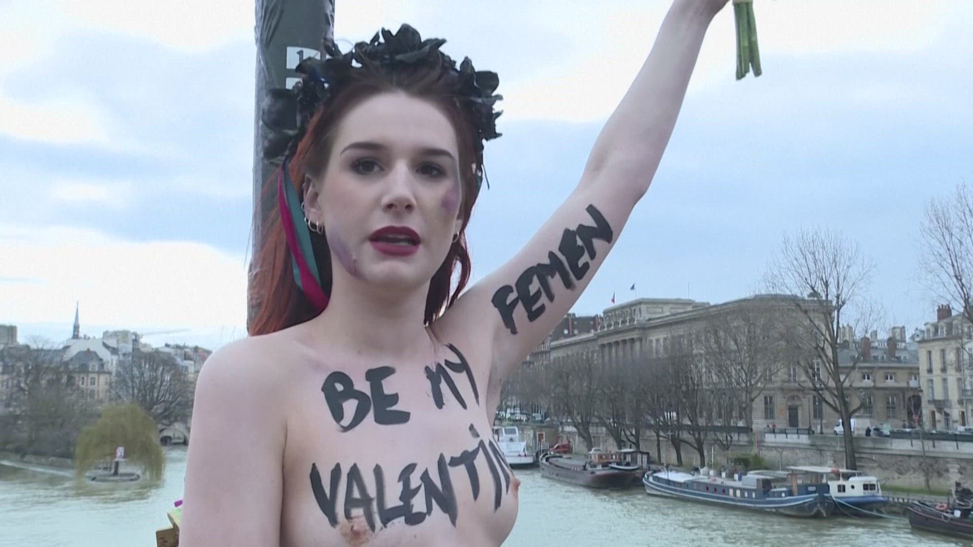 Marine Le Pen speech interrupted by Femen protester A topless Femen protester interrupts a speech by presidential candidate Marine Le Pen before being thrown out. IMAGES